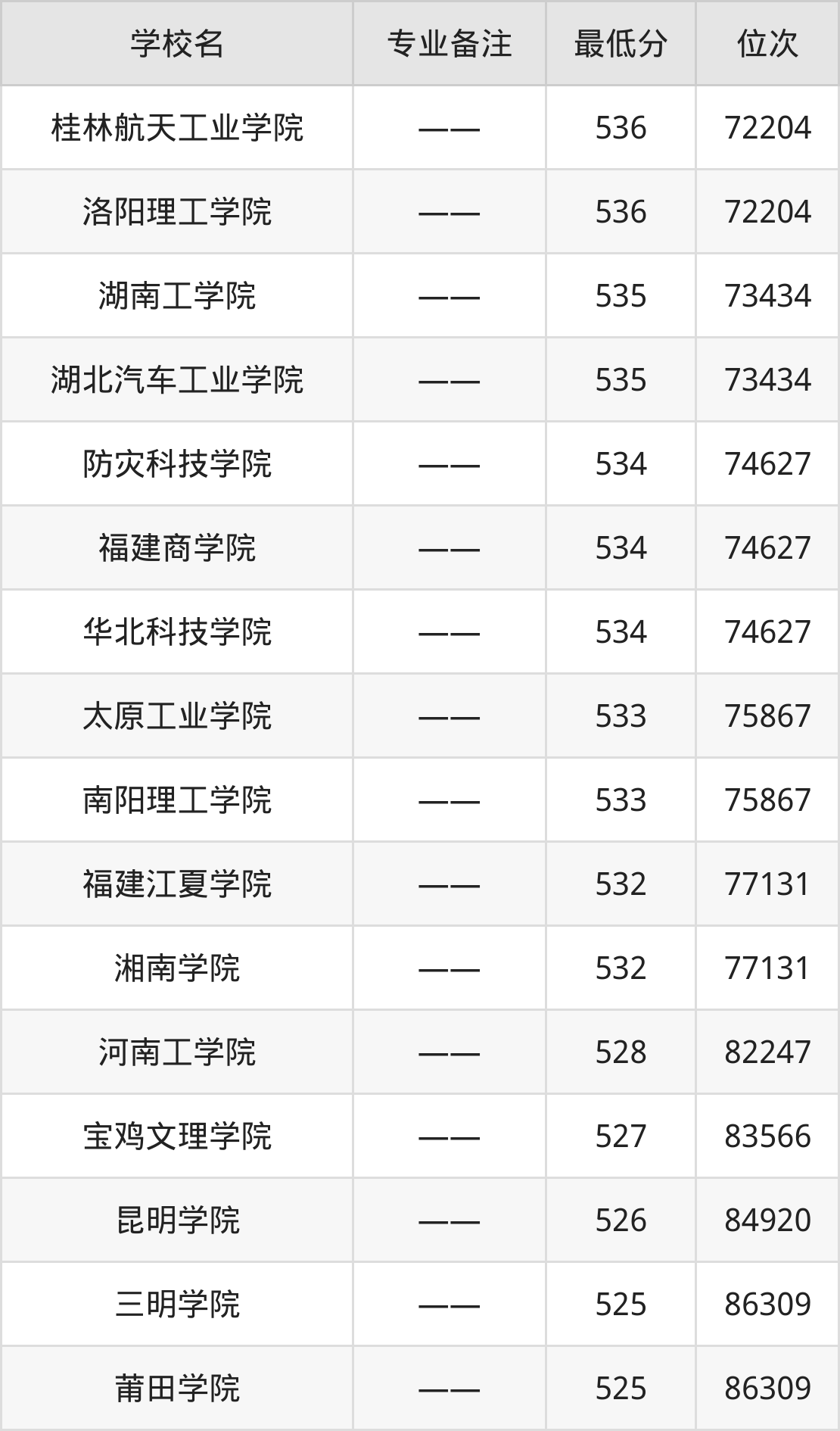 | 晋中信息学院 | —— | 物理+化学 |