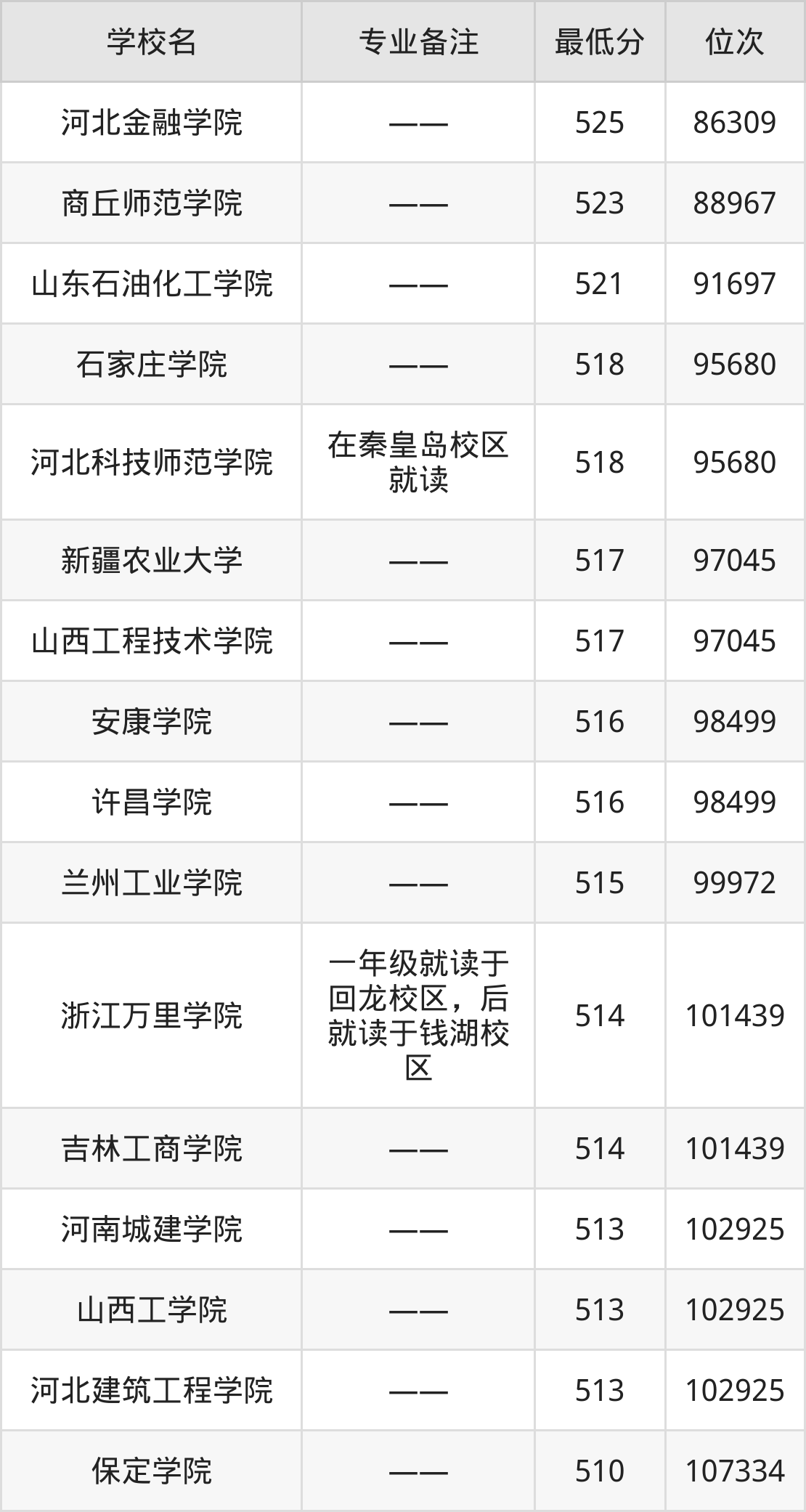 | 保定理工学院 | —— | 物理+化学 |