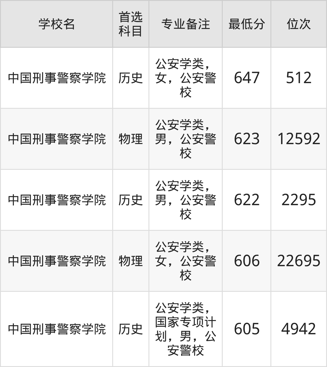 侦查学分数线排名前五的院校分别是:647分的中国刑事警察学院(公安学类,女,公安警校)。