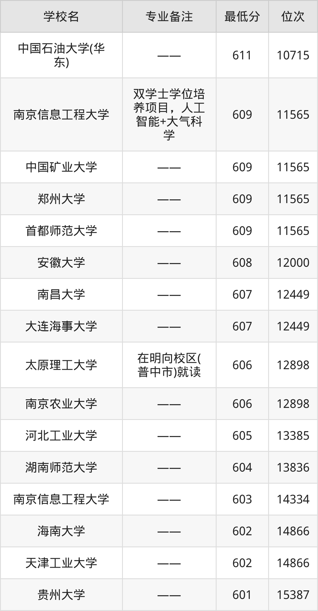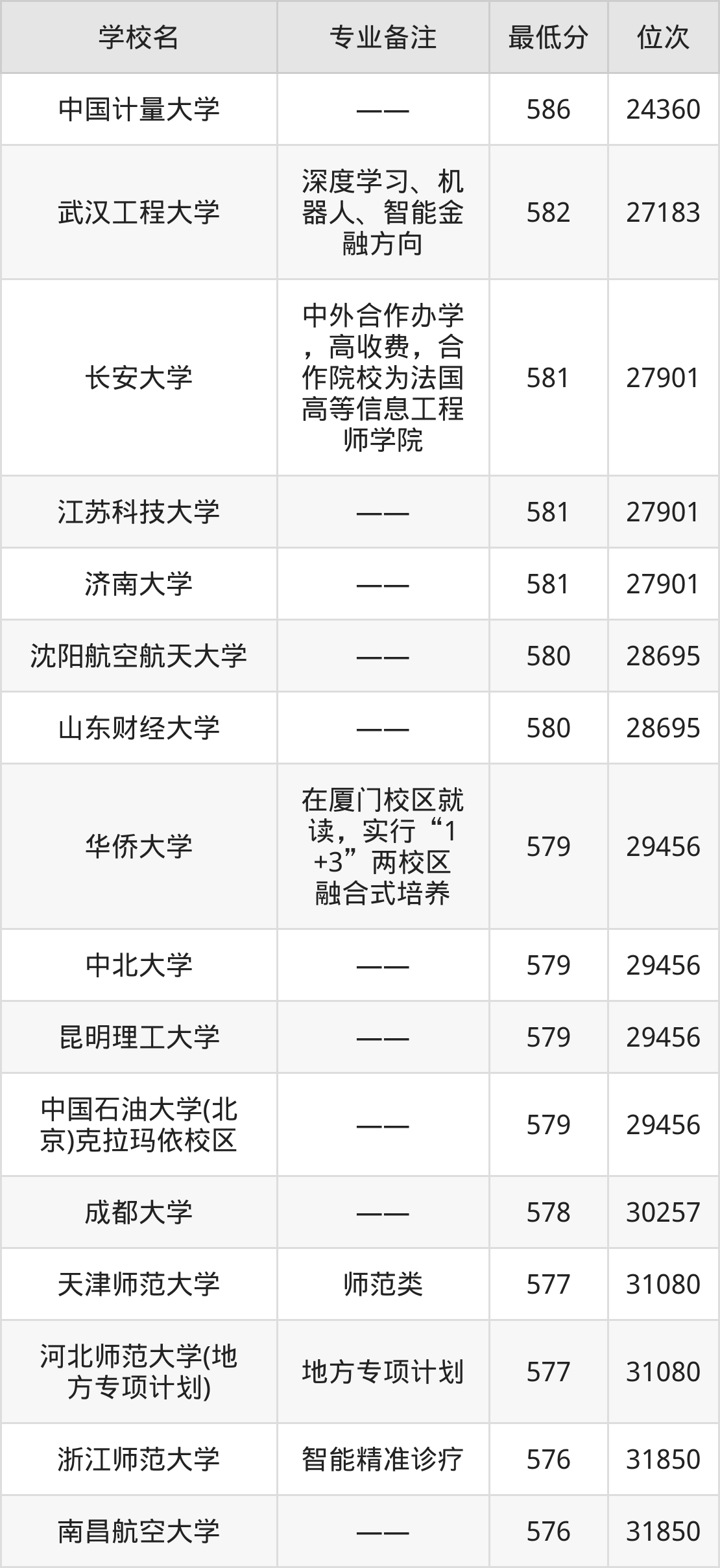 600分左右的人工智能大学有:北京信息科技大学600分、贵州大学601分、海南大学602分、天津工业大学602分。