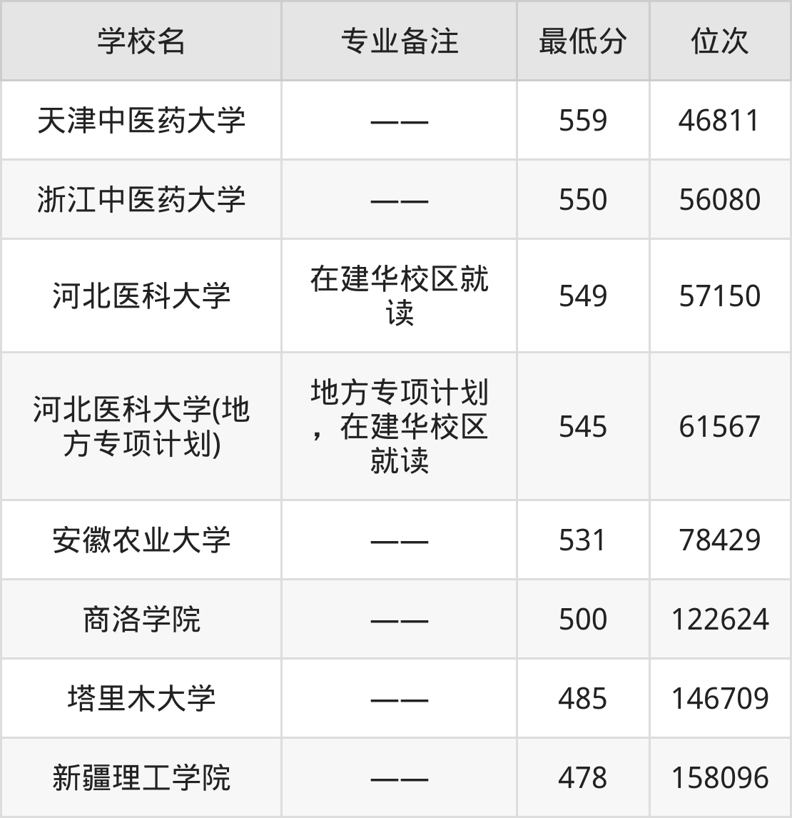 院校举例:天津中医药大学、沈阳医学院、辽宁何氏医学院、上海健康医学院、上海中医药大学、南京中医药大学、浙江中医药大学、安徽医科大学、河南中医药大学、湖南医药学院等。