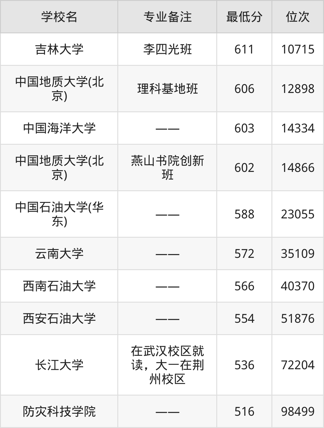 院校举例:防灾科技学院、保定理工学院、吉林大学、东北石油大学、合肥工业大学、中国海洋大学、中国石油大学(华东)、中国地质大学(武汉)、桂林理工大学、西南石油大学等。