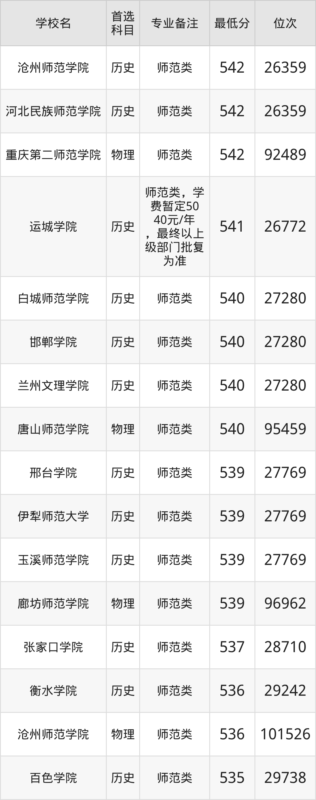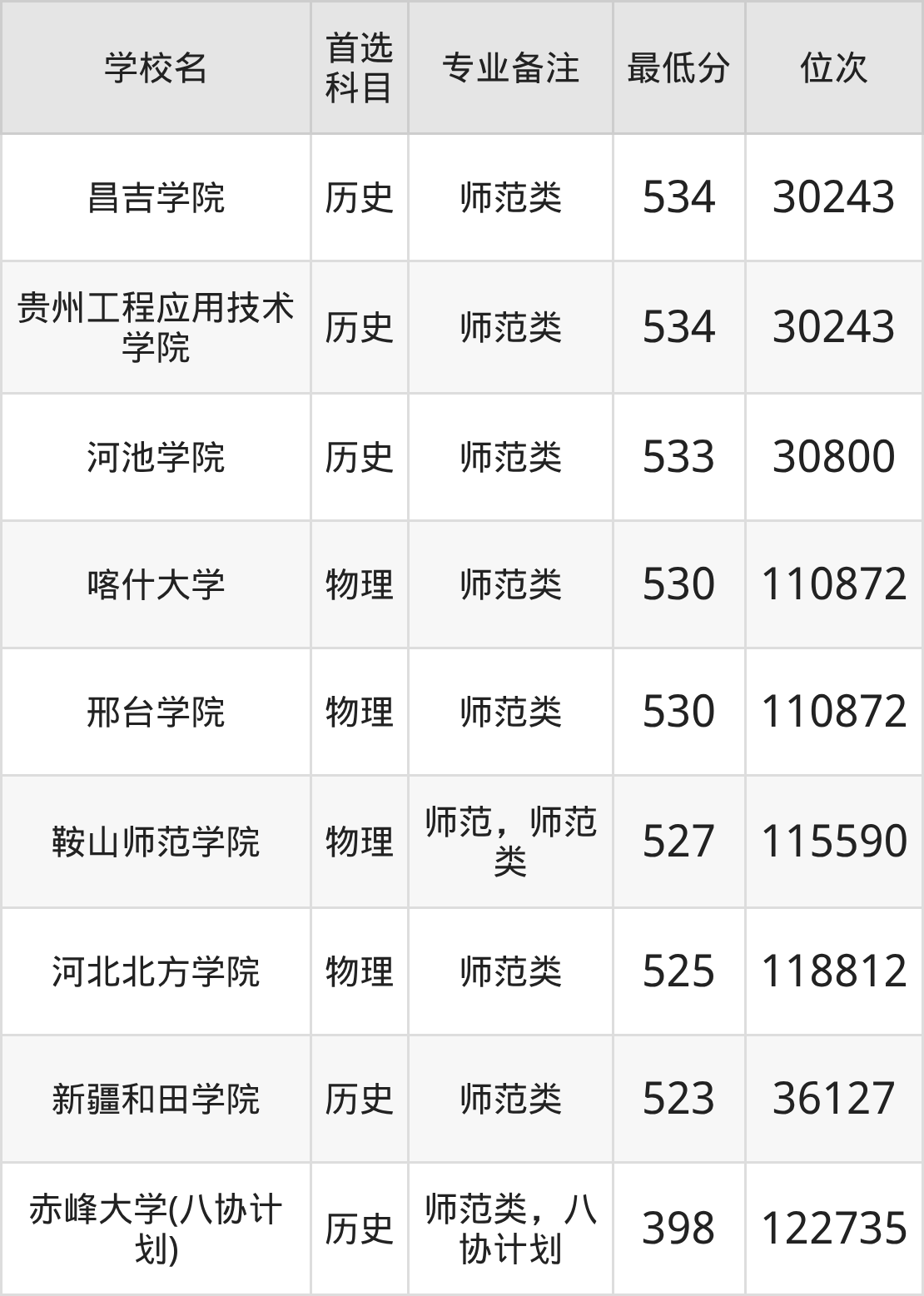 分数线低于530分能上的思想政治教育大学还有邢台学院(530分)、鞍山师范学院(527分)、河北北方学院(525分)、新疆和田学院(523分)。