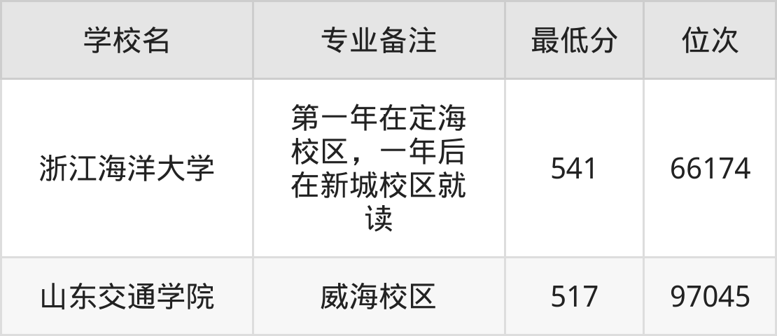 院校举例:浙江海洋大学、福建理工大学、山东交通学院。
