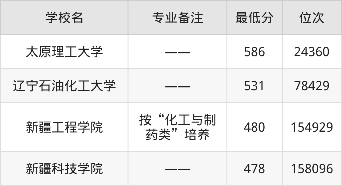 院校举例:辽宁石油化工大学、哈尔滨学院、华东理工大学、合肥工业大学(宣城校区)、广东石油化工学院、新疆工程学院。