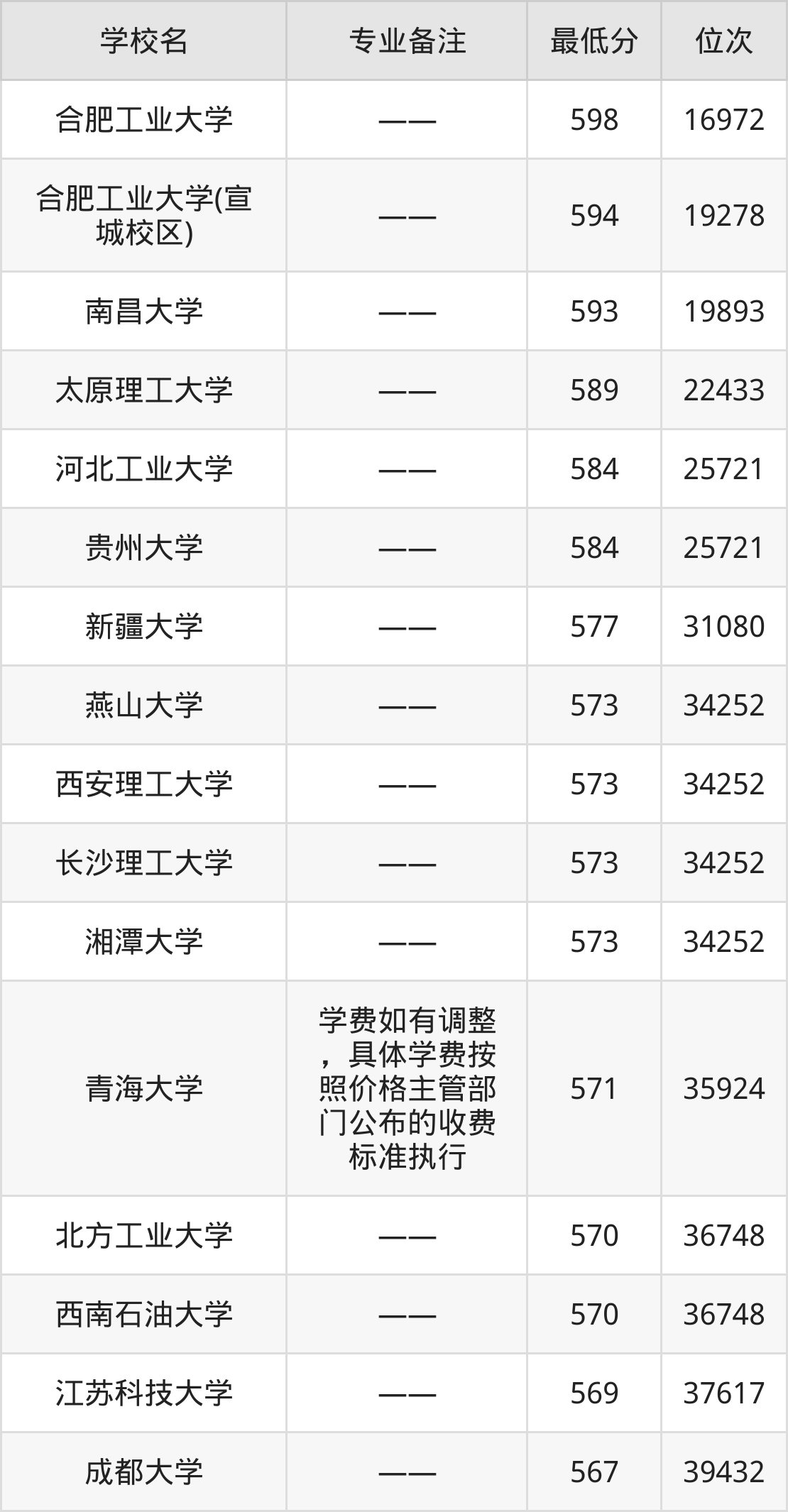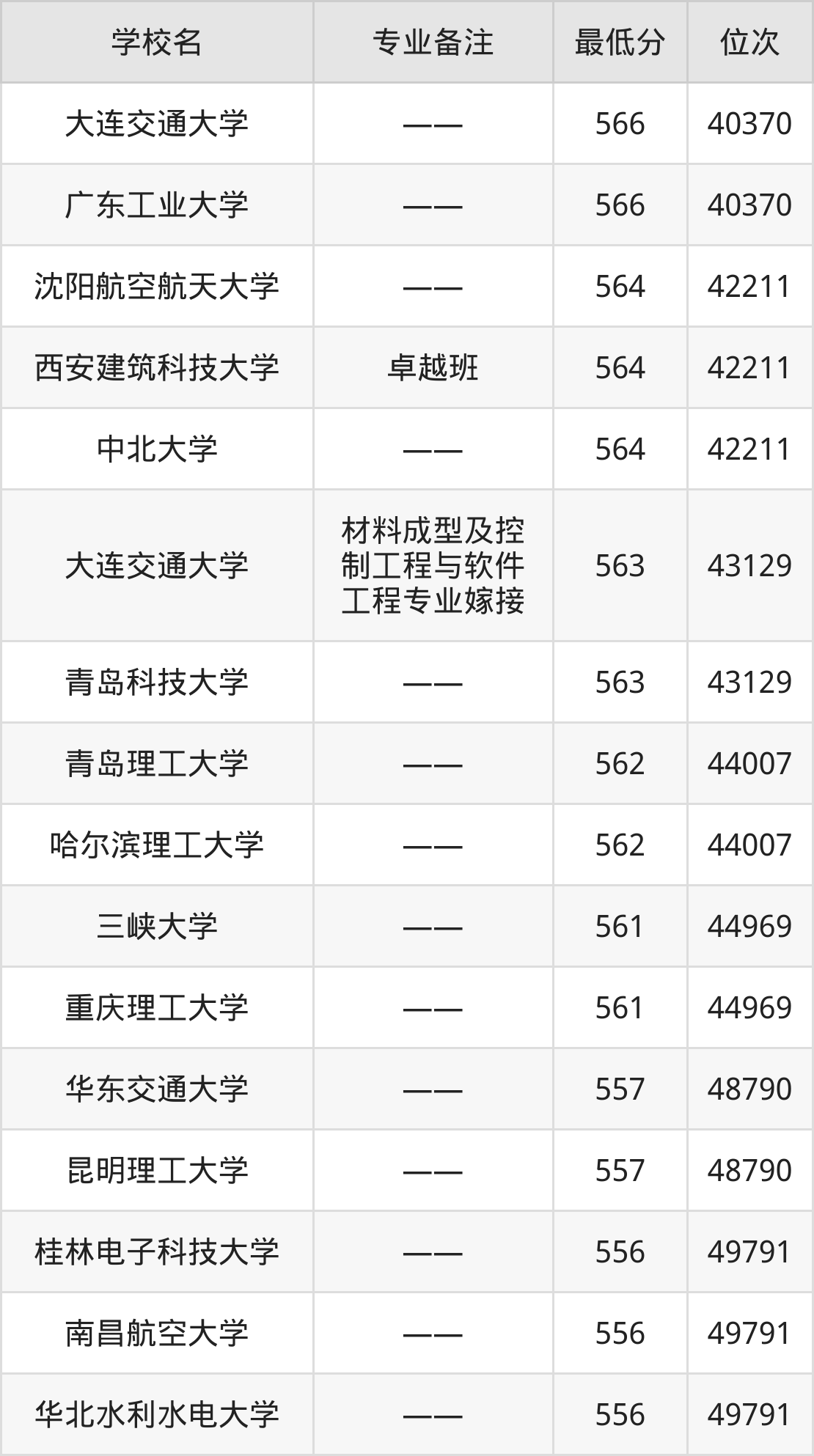 三、材料成型及控制工程专业录取分数线