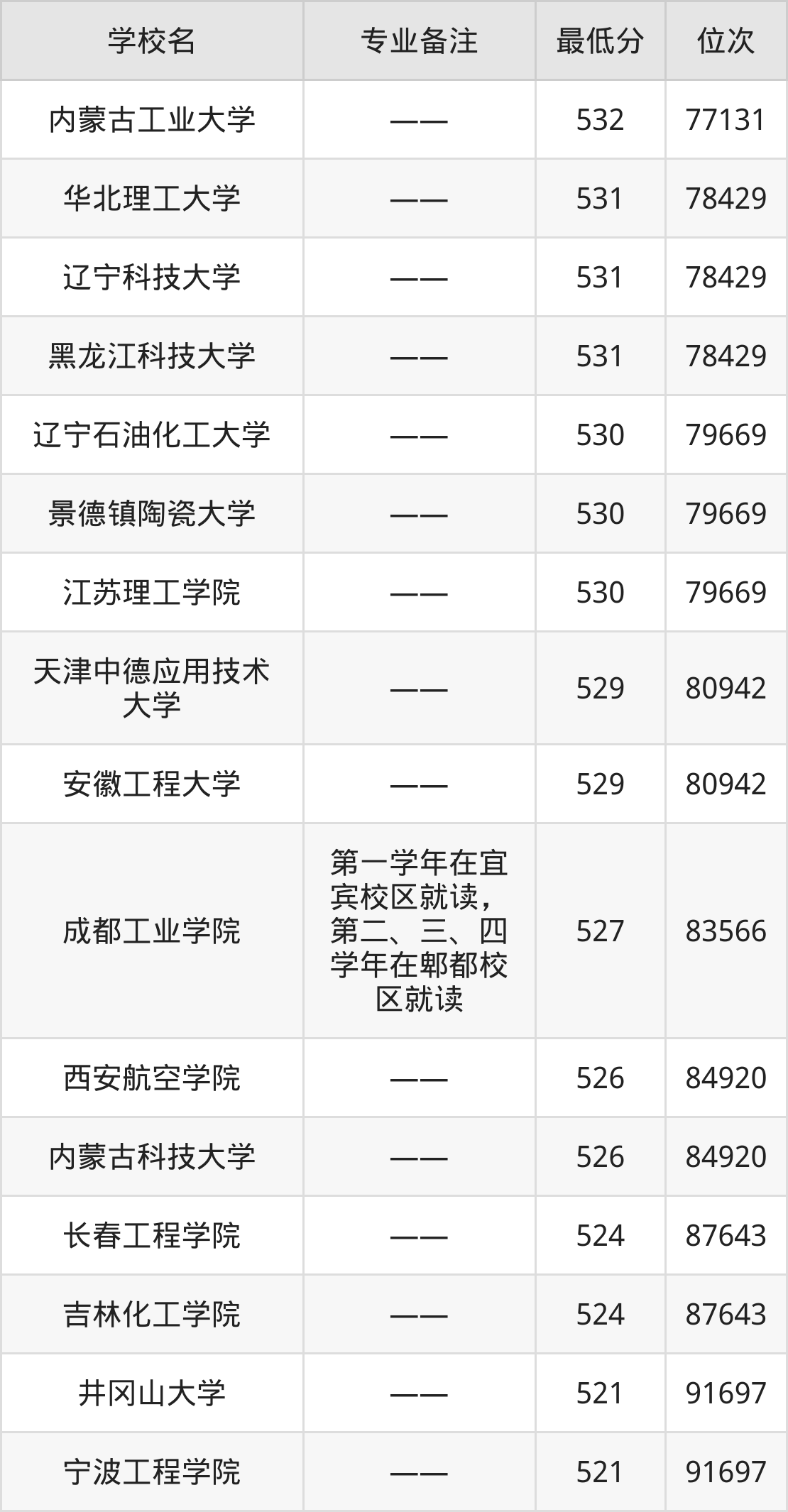 | 长春工程学院 | —— | 物理+化学 |