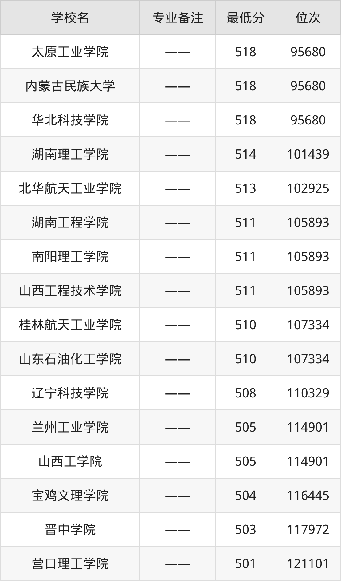 | 山西工学院 | —— | 物理+化学 |