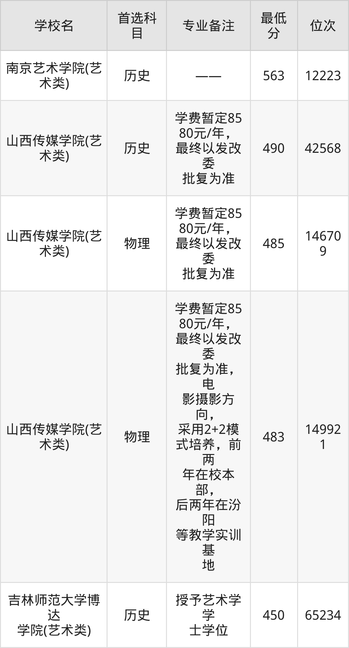 | 山西传媒学院 | 电影摄影方向 | 不提选科要求 |