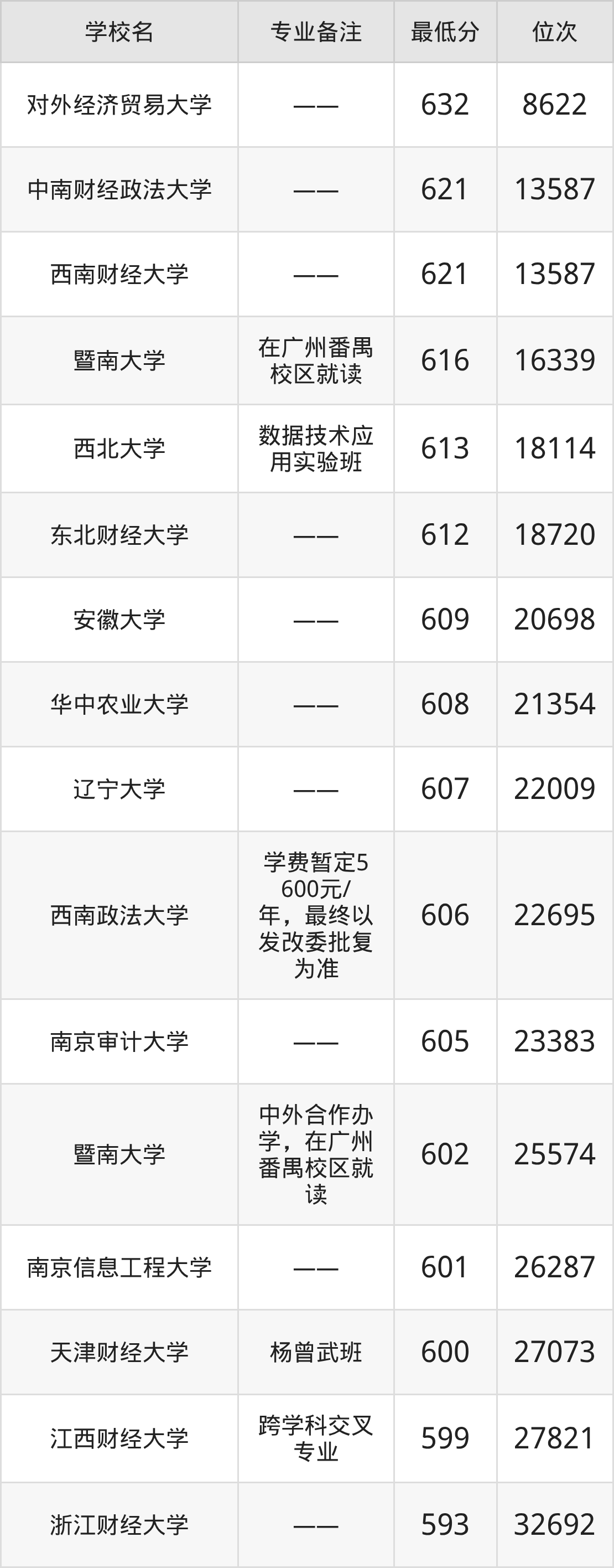 600分左右的经济统计学大学有:天津财经大学600分、南京信息工程大学601分、江西财经大学599分、暨南大学602分。
