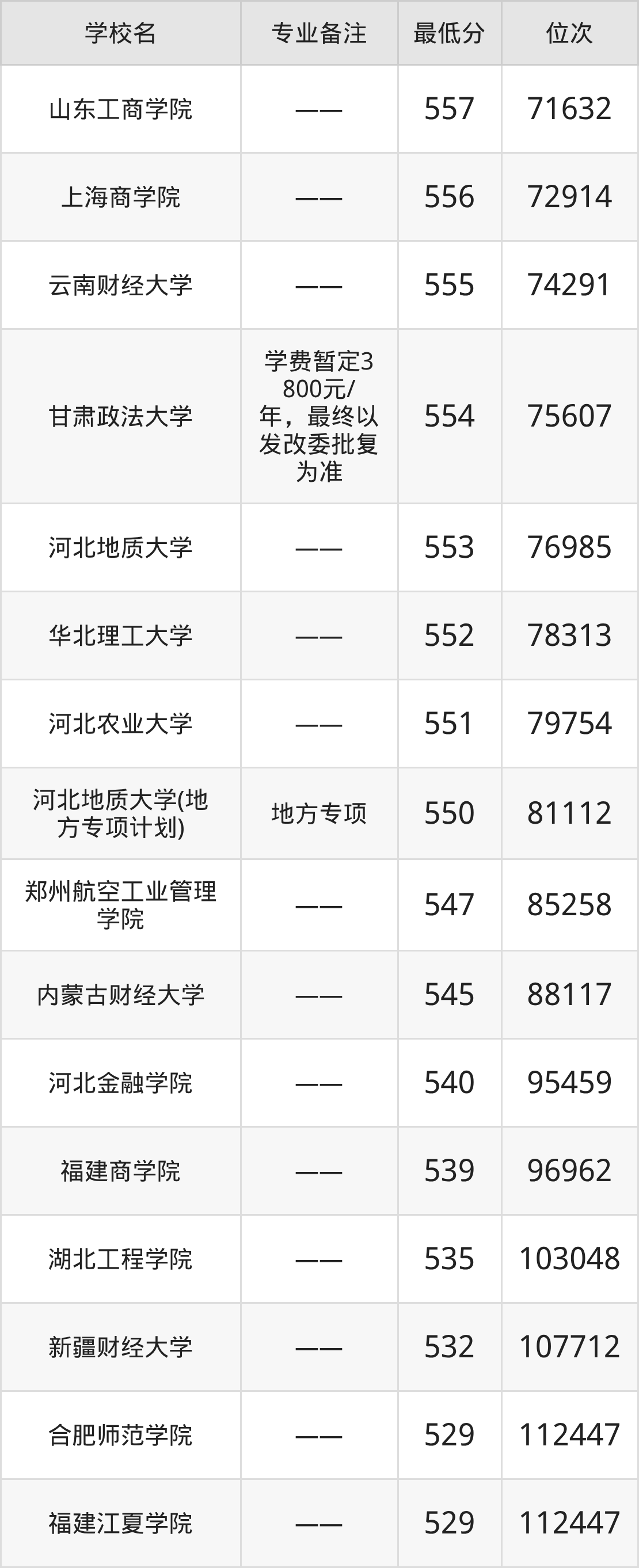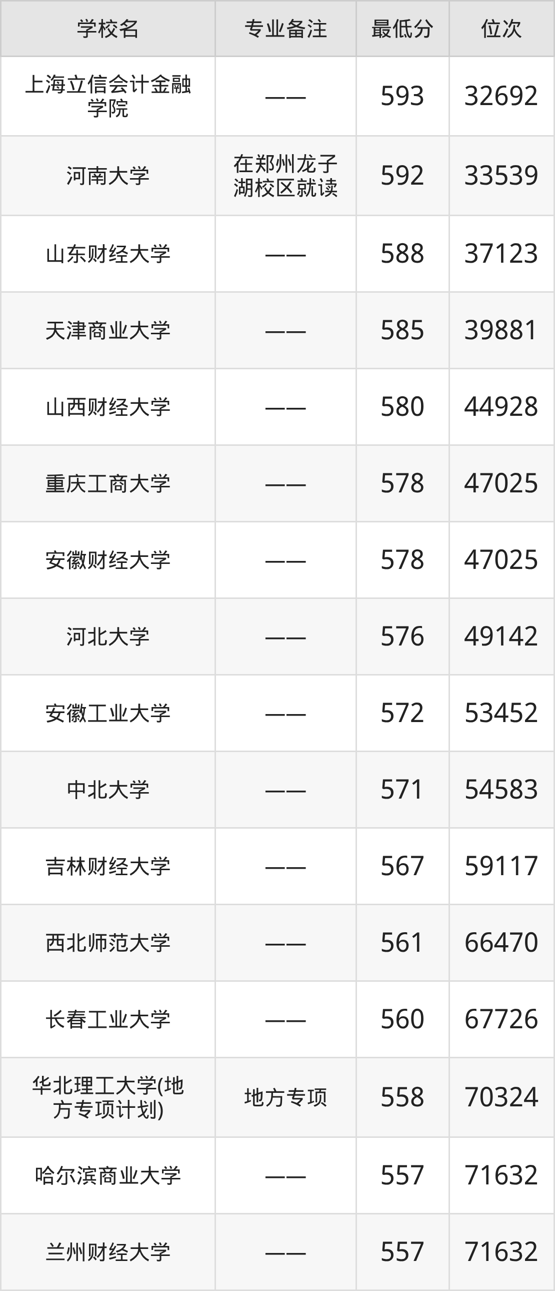 院校举例:北京工业大学、北京工商大学、对外经济贸易大学、天津商业大学、天津财经大学、天津财经大学珠江学院、河北大学、河北金融学院、中北大学、山西大同大学等。