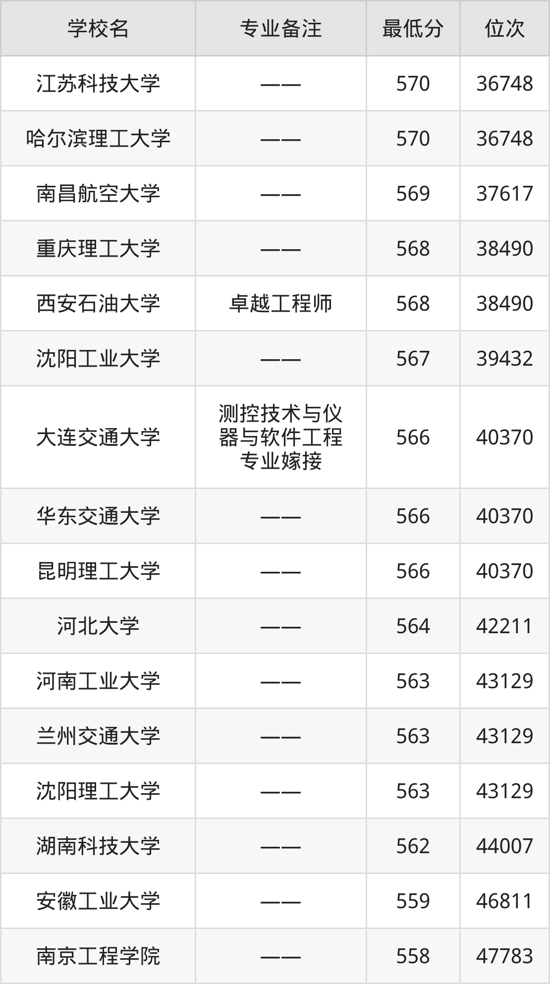 三、测控技术与仪器专业录取分数线