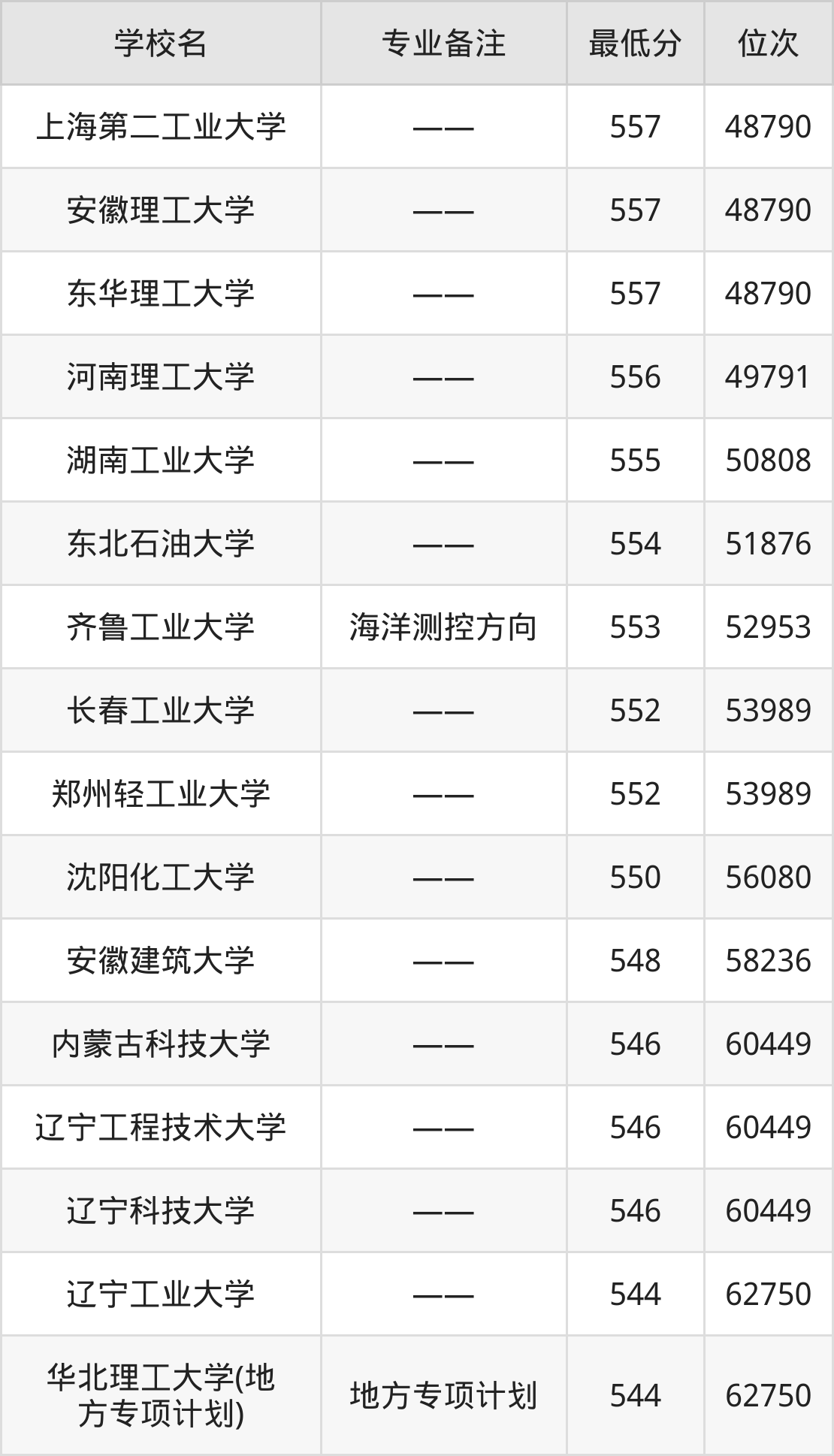| 河北建筑工程学院 | —— | 物理+化学 |