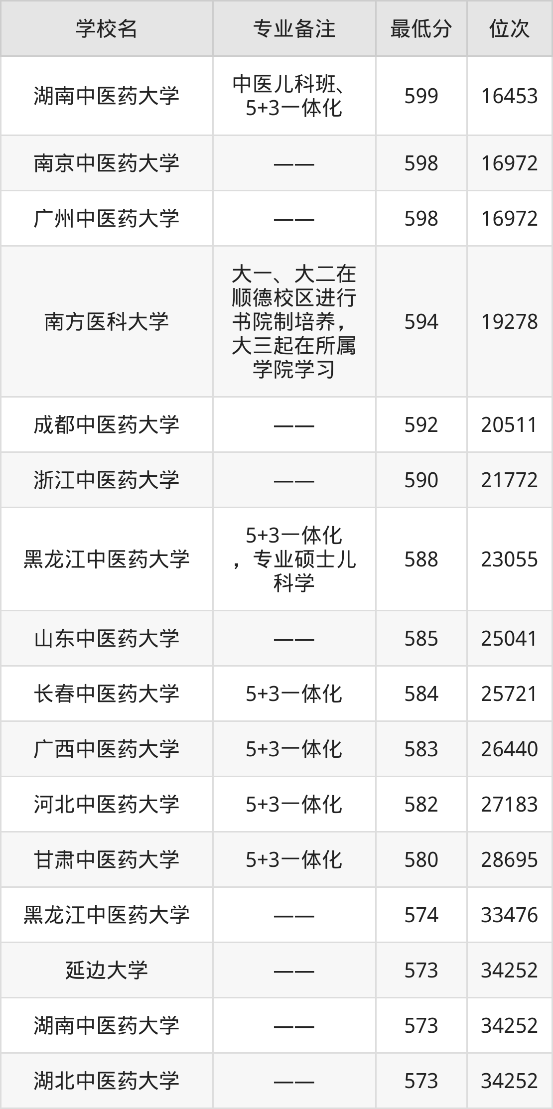2024年全国公办本科大学中医学专业在河北省招录数据显示: