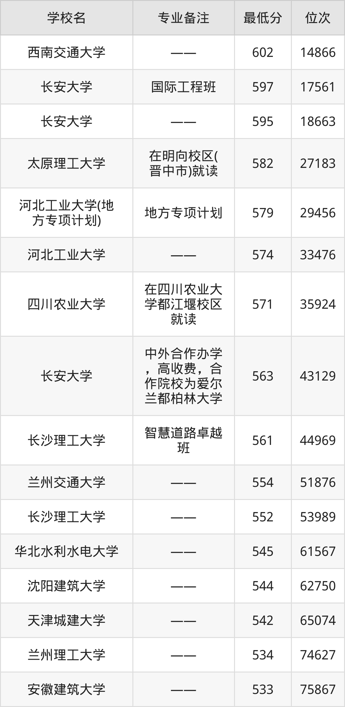三、道路桥梁与渡河工程专业录取分数线