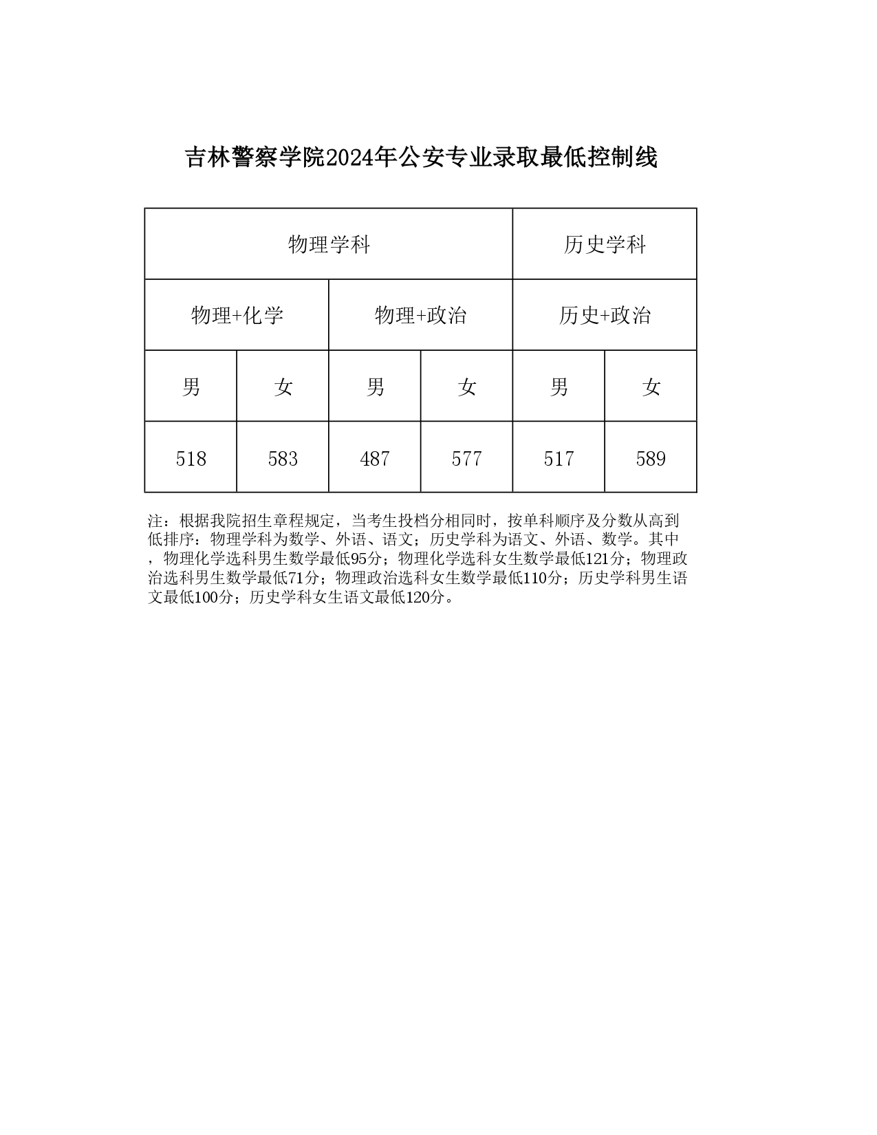 下方展示了吉林警察学院2024年的最低录取分数线,请2025年有意报考的学生参考!