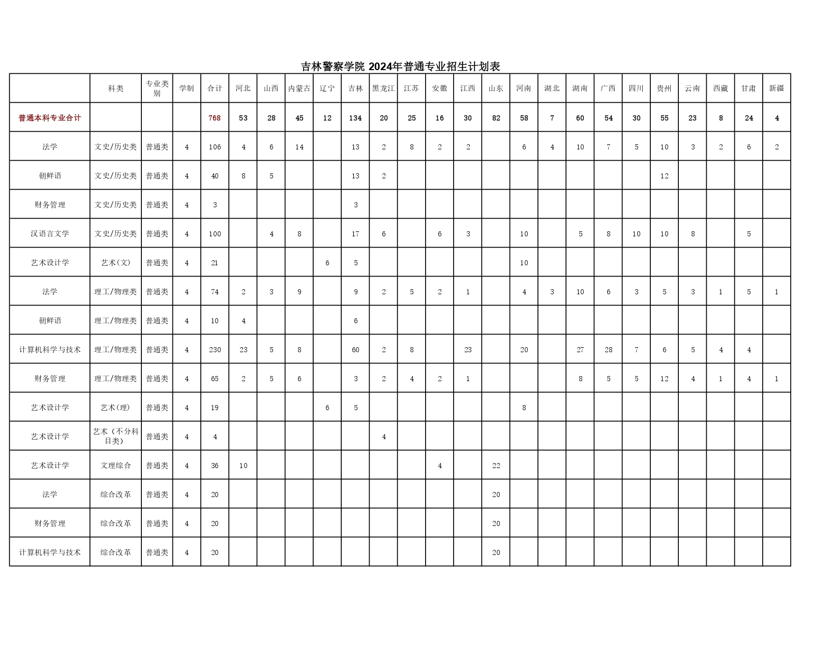 下方展示的是吉林警察学院的具体招生计划,请2025年高考生参考!