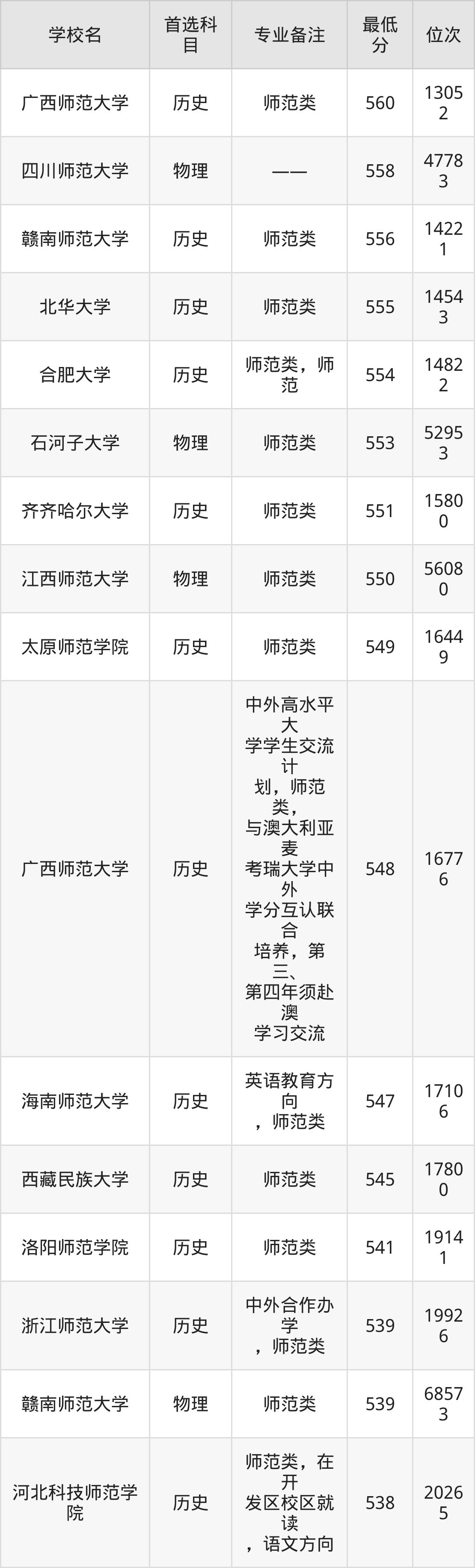 | 华南师范大学 | 师范 | 不提选科要求 |