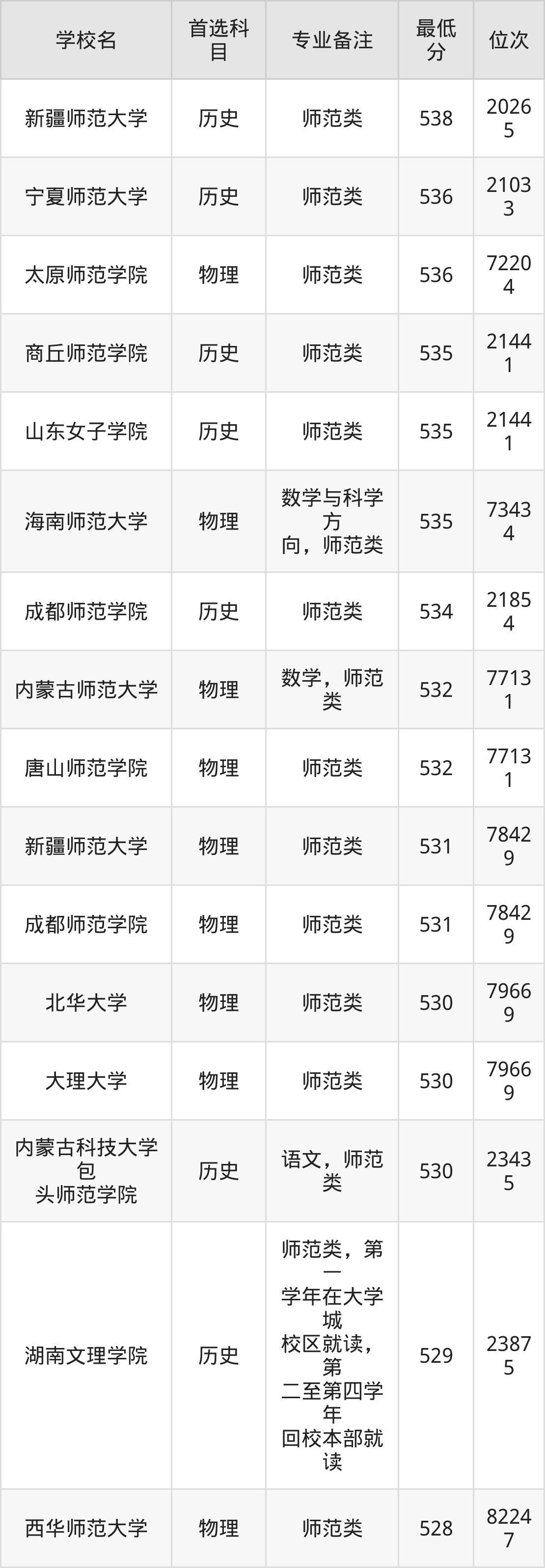 | 宁夏师范大学 | 师范 | 不提选科要求 |