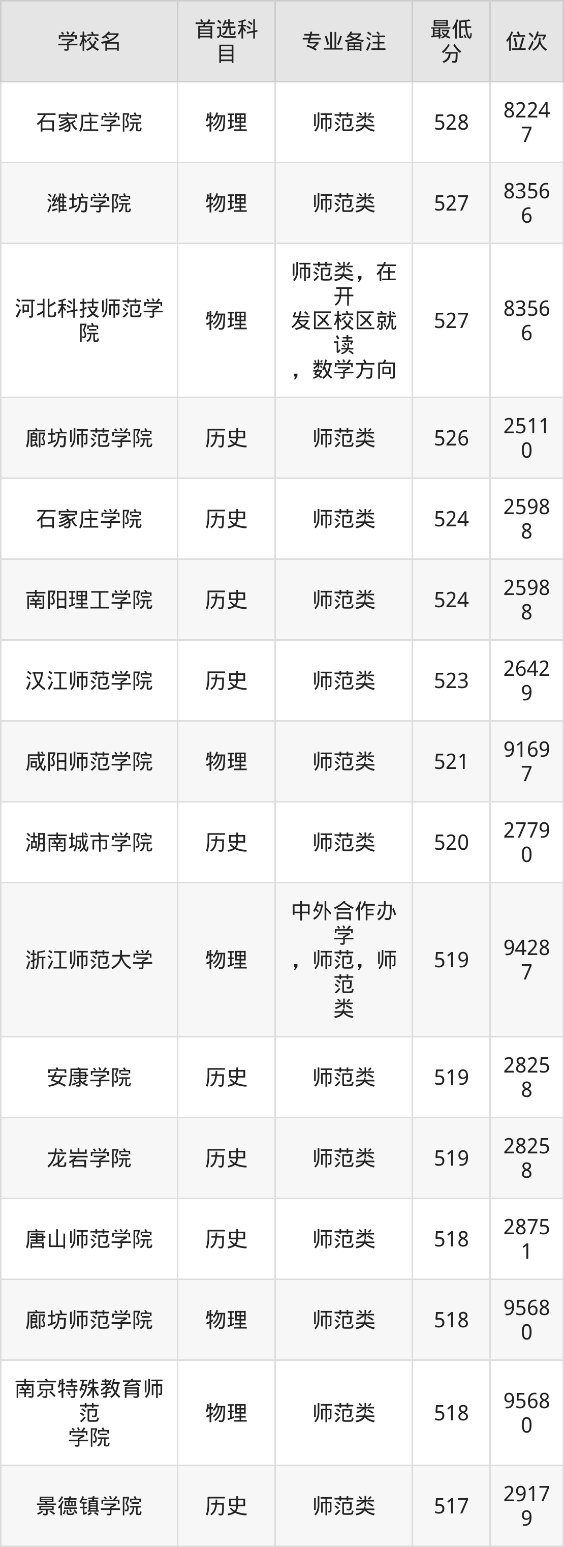 2024年全国公办本科大学小学教育专业在河北省招录数据显示: