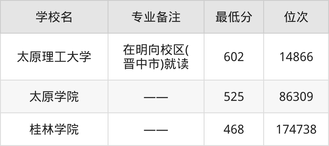 智能测控工程分数线排名前三的院校分别是:602分的太原理工大学(在明向校区(晋中市)就读)、525分的太原学院、468分的桂林学院。