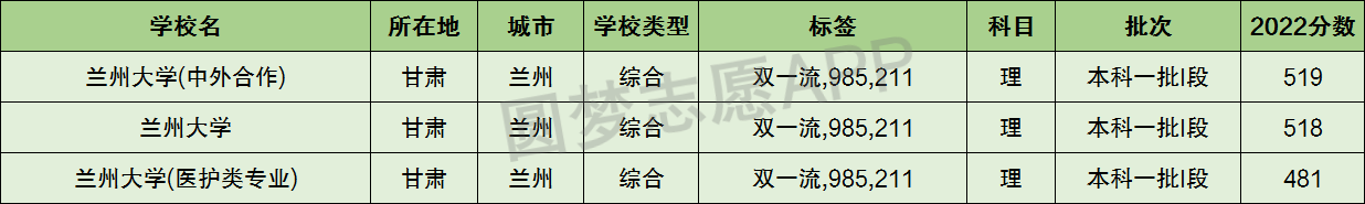 此外下表中还整理了甘肃省双一流大学的分数及名单。