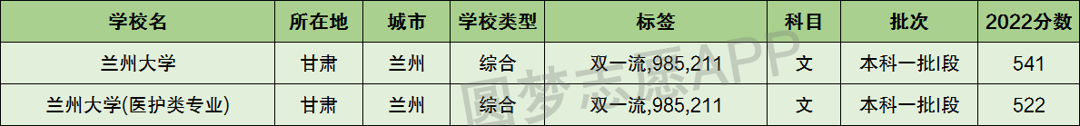 2022年甘肃省最低分数线为文科541分、理科518分。