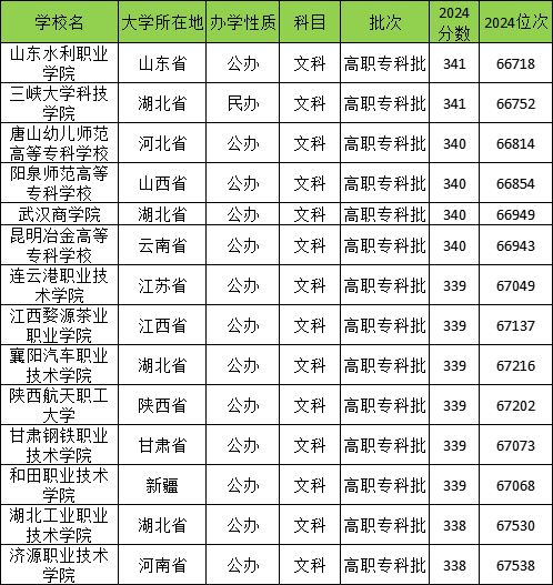 可以看到,2024年陕西省高考340分左右的文科考生可以报考山东水利职业学院341分、三峡大学科技学院341分、武汉商学院340分等。