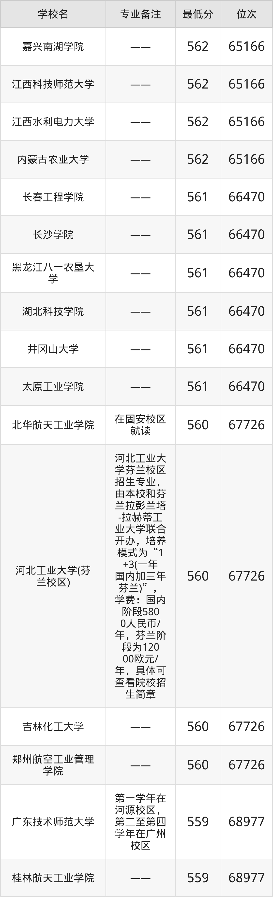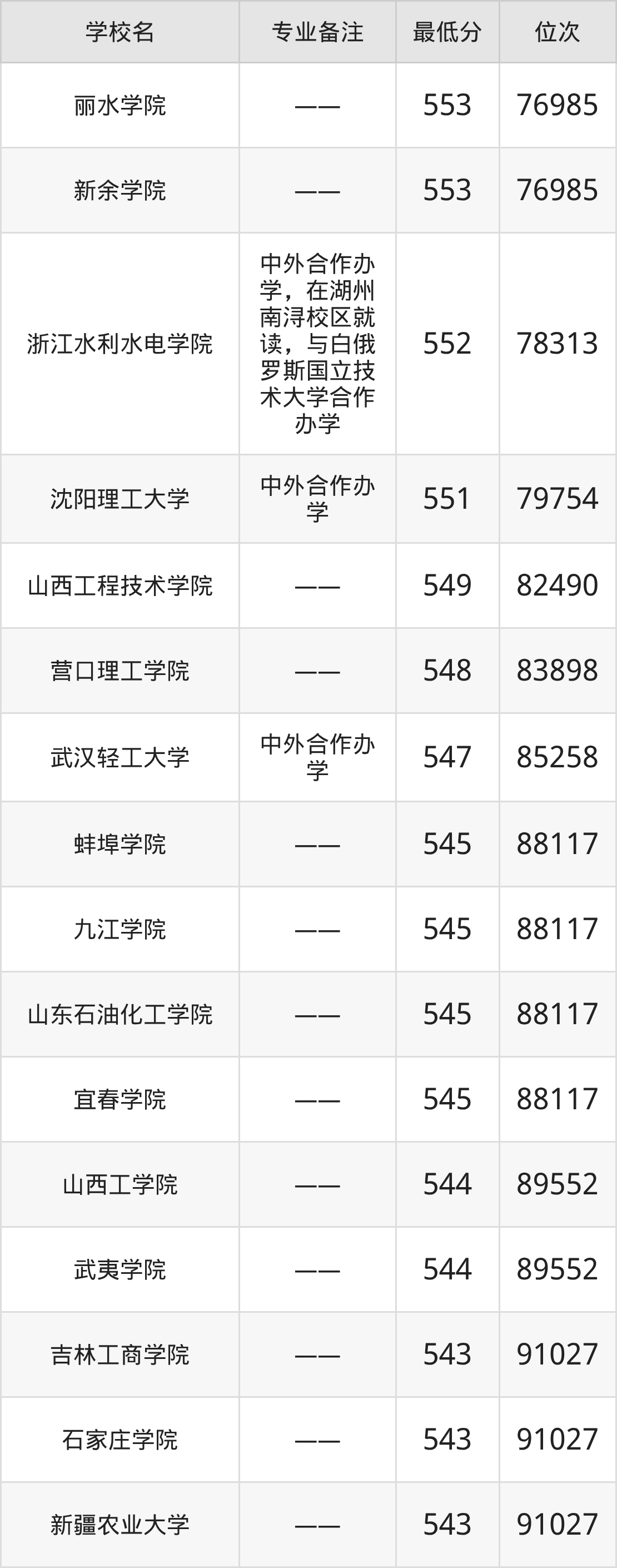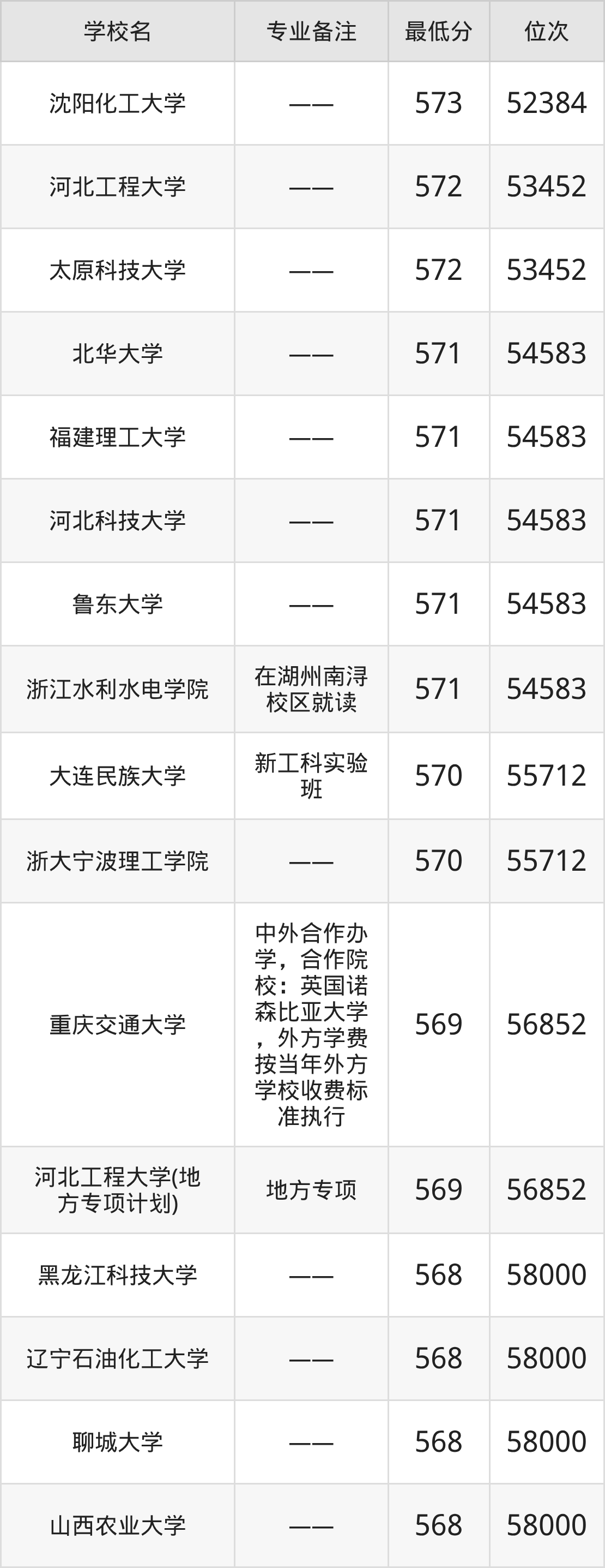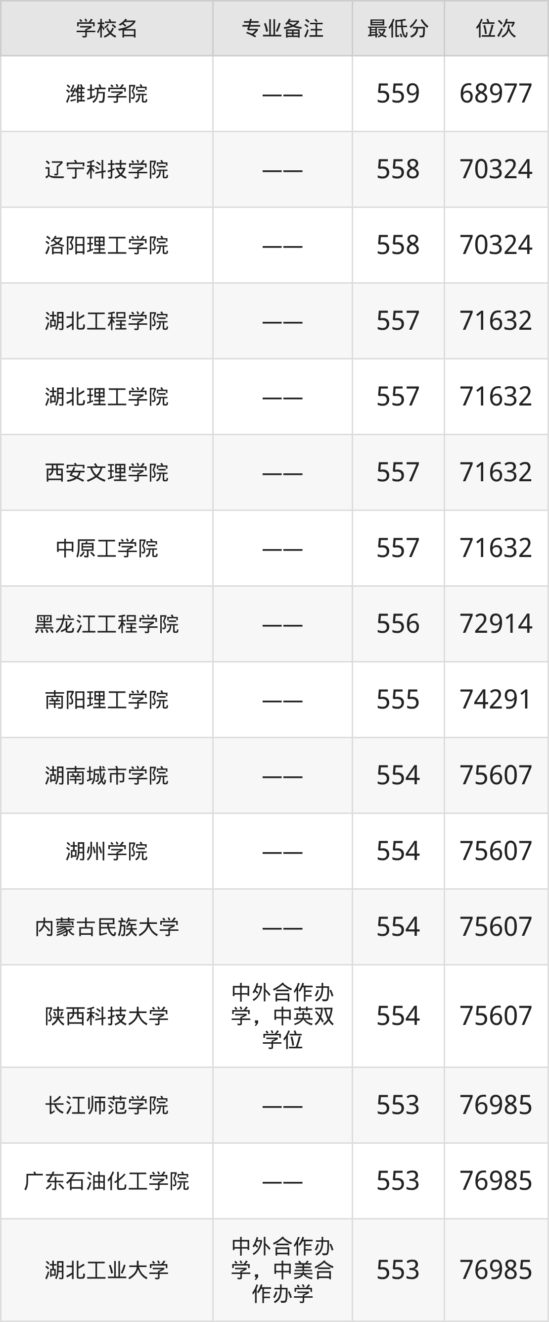 分数线低于520分能上的机械设计制造及其自动化大学还有新疆工程学院(517分)、新疆理工学院(511分)、唐山学院(504分)、吉林工程技术师范学院(502分)。