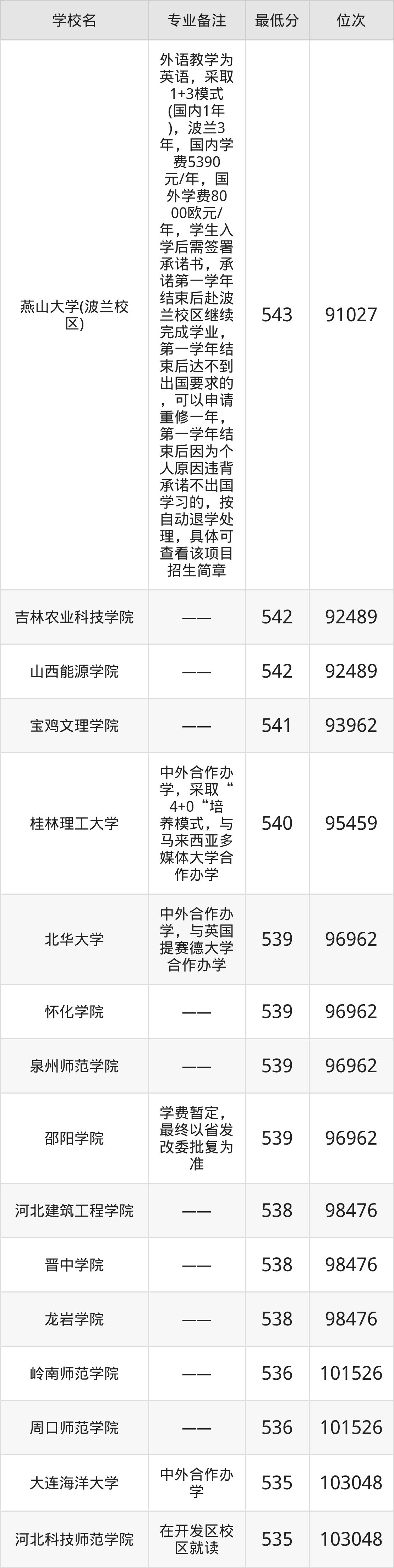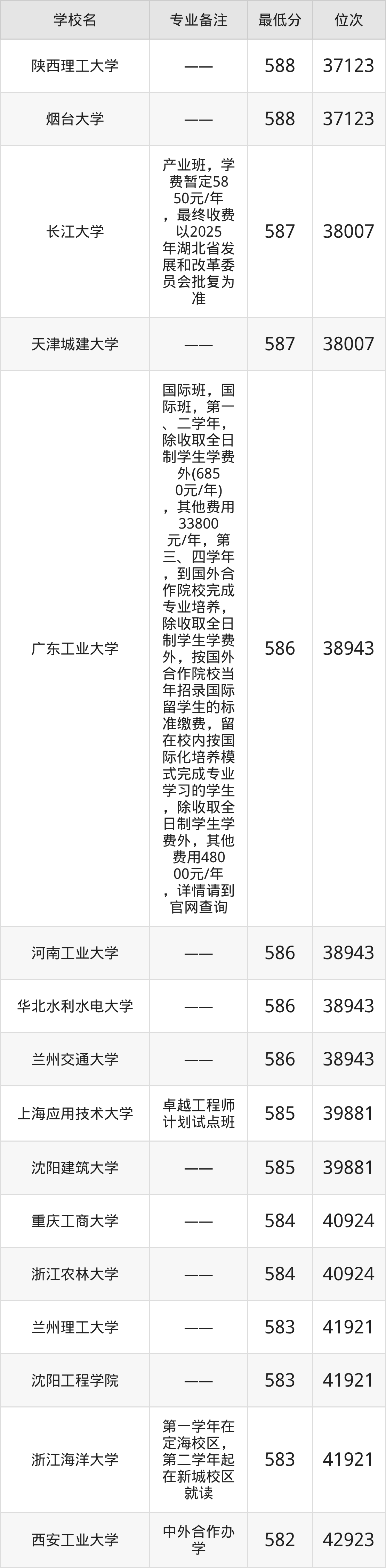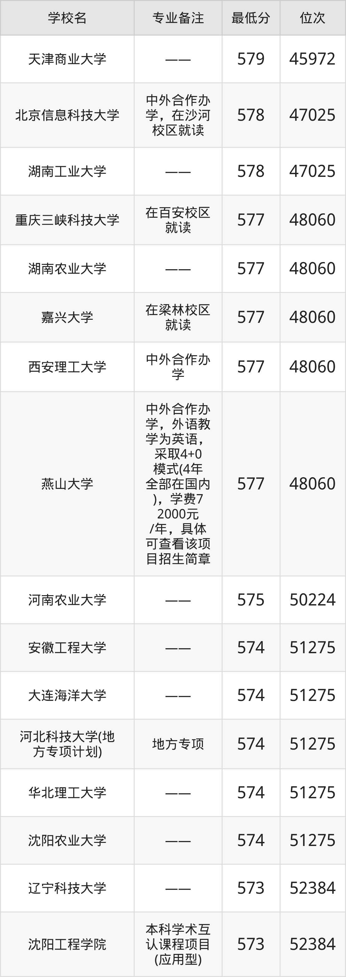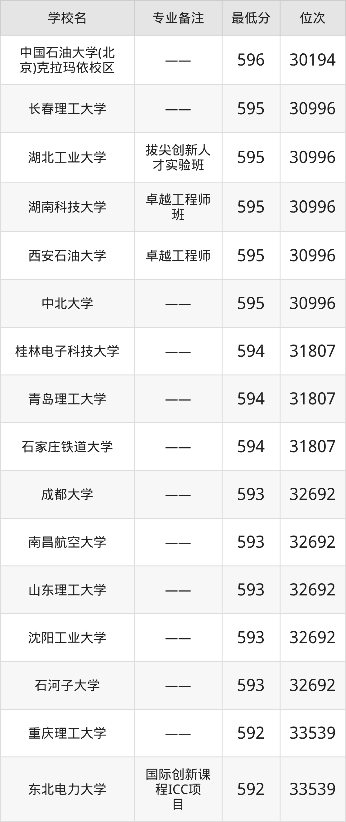 分数线低于520分能上的机械设计制造及其自动化大学还有新疆工程学院(517分)、新疆理工学院(511分)、唐山学院(504分)、吉林工程技术师范学院(502分)。