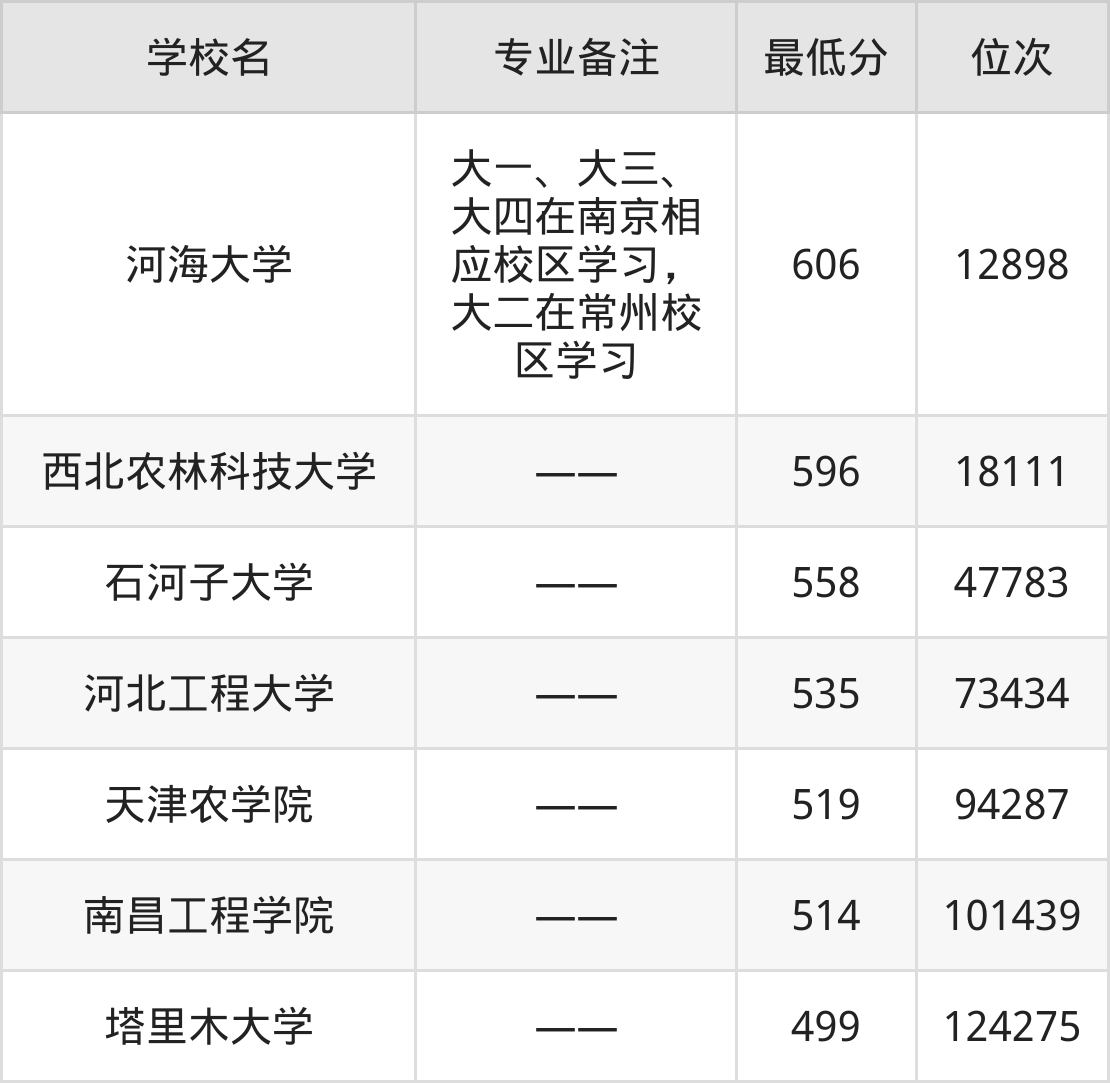 院校举例:内蒙古农业大学、河海大学、浙江水利水电学院、南昌工程学院、华北水利水电大学、西北农林科技大学、塔里木大学、新疆农业大学。