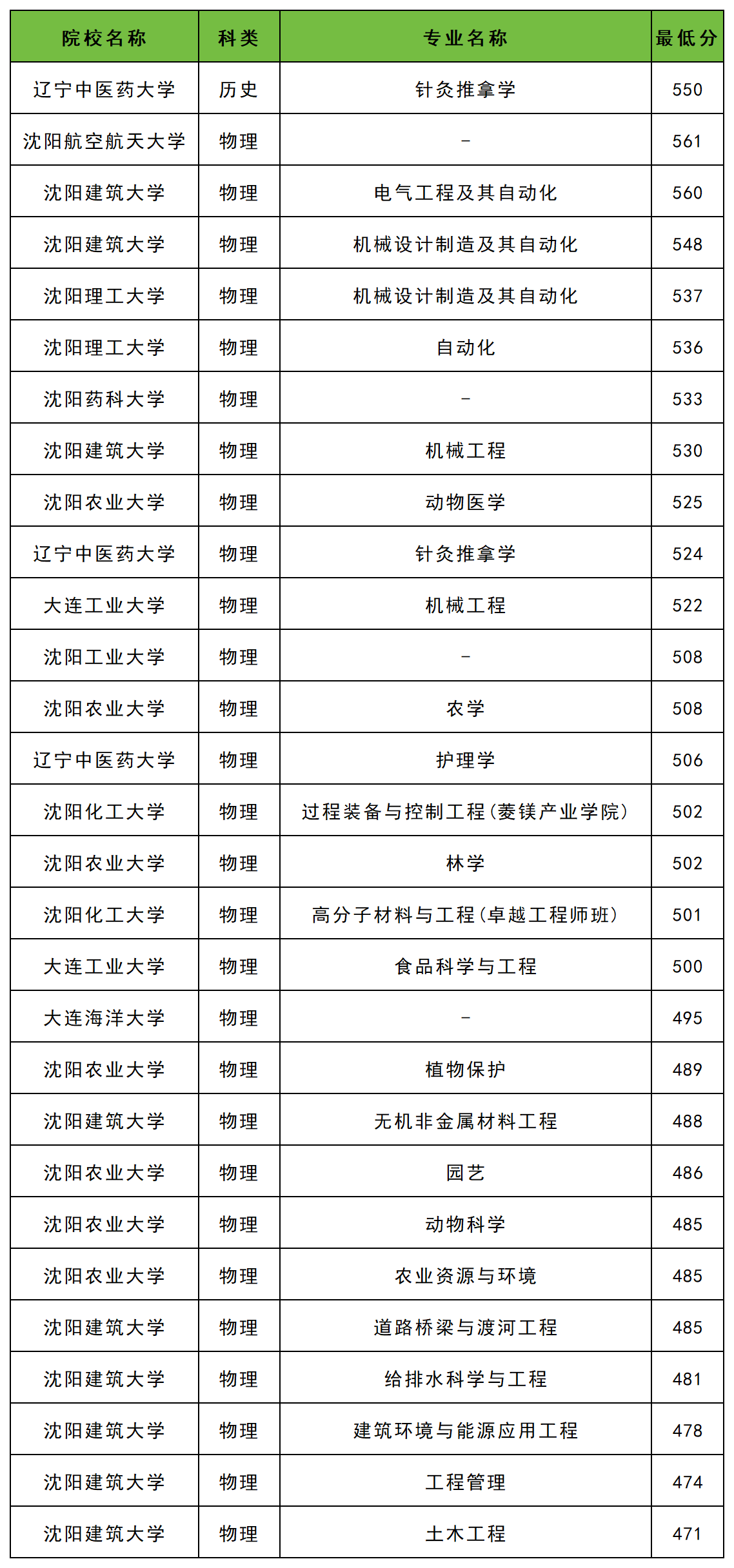 2025年辽宁地方专项物理类录取分数线位于471分到561分之间,收分最低的是沈阳建筑大学土木工程专业,收分最高的是沈阳航空航天大学,各校各专业具体分数线如下。