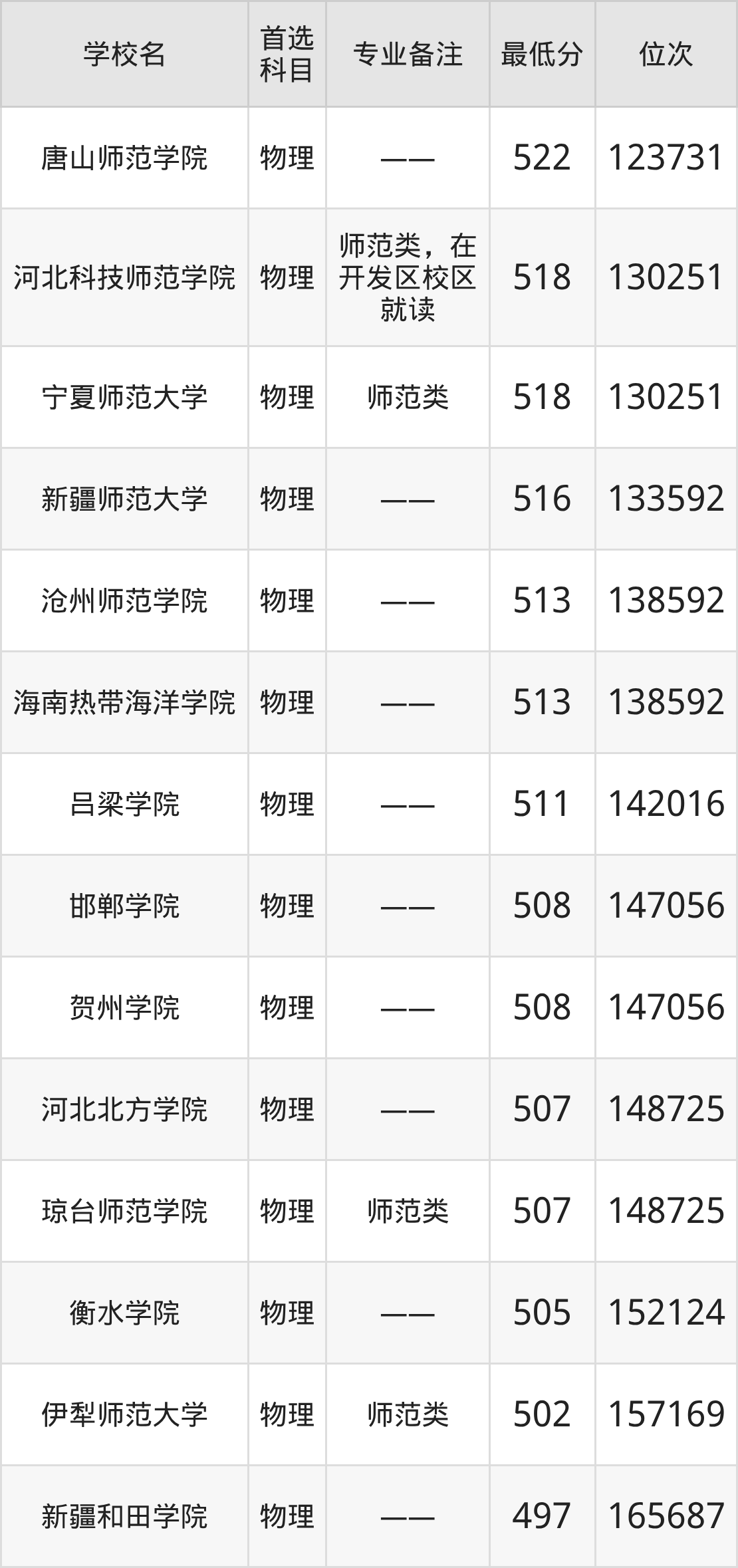 分数线低于510分能上的应用心理学大学还有河北北方学院(507分)、琼台师范学院(507分)、衡水学院(505分)、伊犁师范大学(502分)。