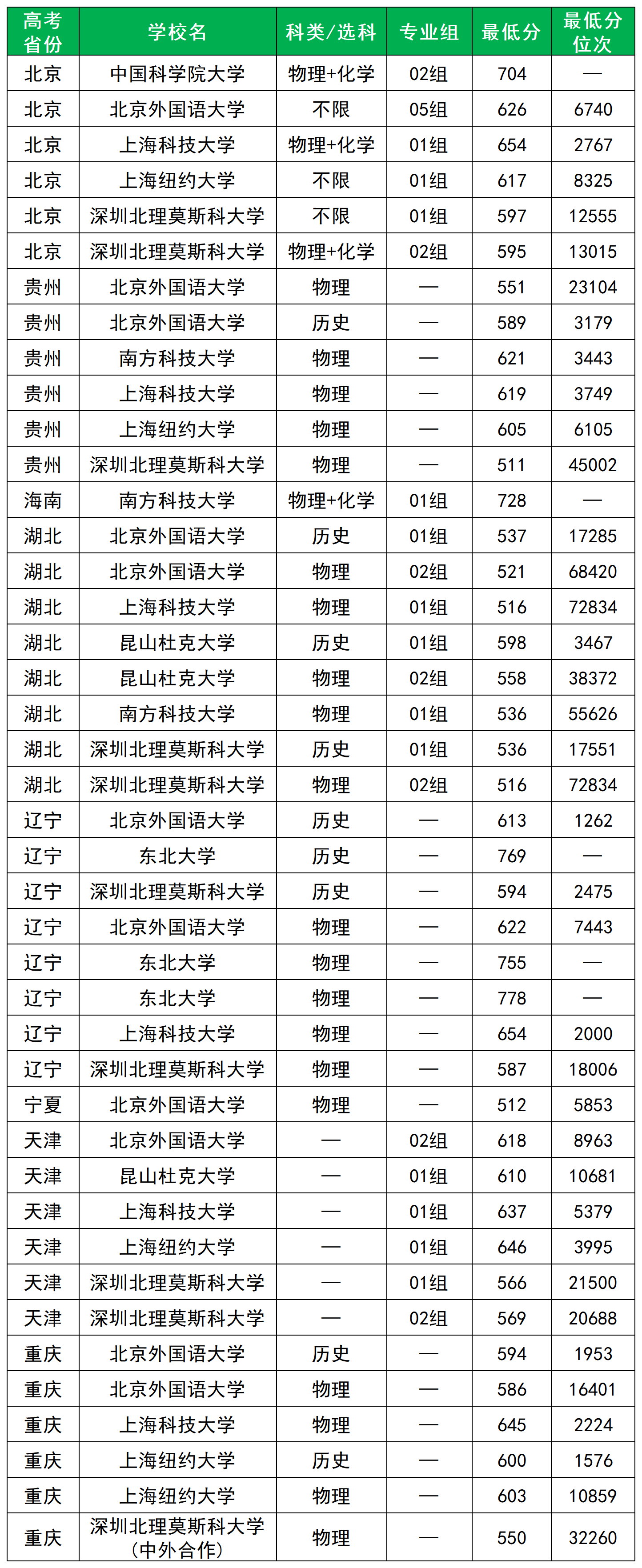 想报考北京外国语大学,贵州考生选考物理,最低需551分;