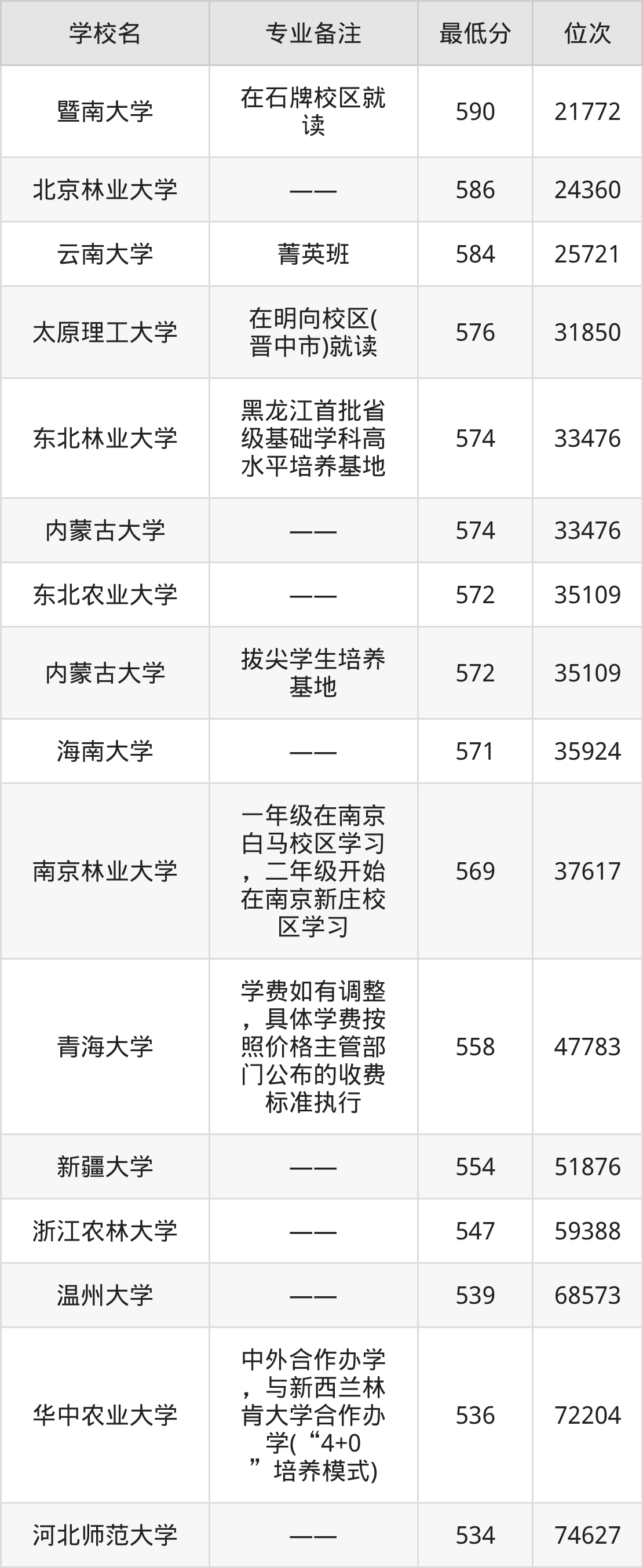 院校举例:北京师范大学、张家口学院、山西大学、山西农业大学、山西师范大学、内蒙古大学、内蒙古师范大学、沈阳农业大学、上海应用技术大学、上海海洋大学等。
