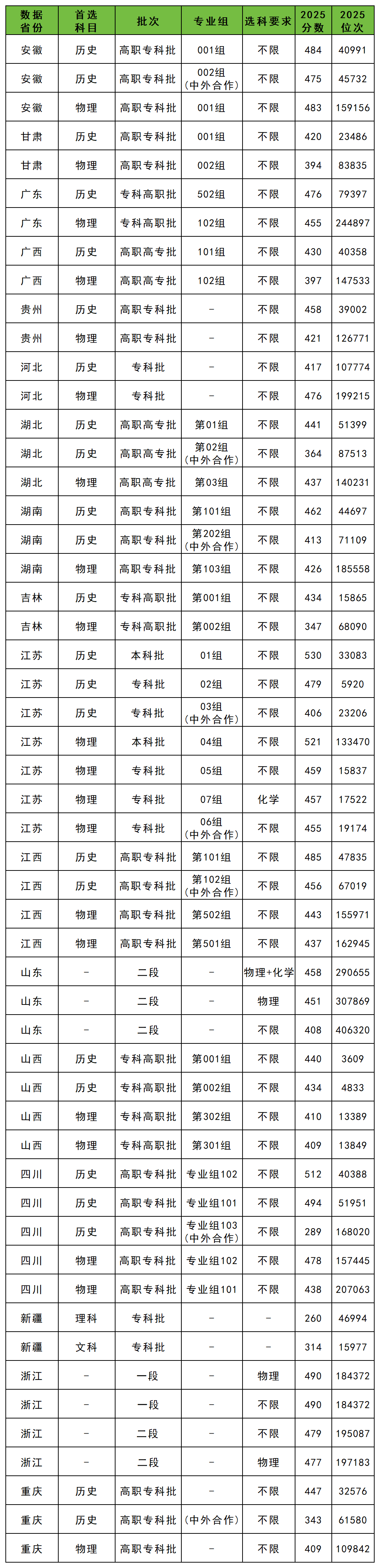 2025年苏州职业技术大学在各省的录取分数如下: