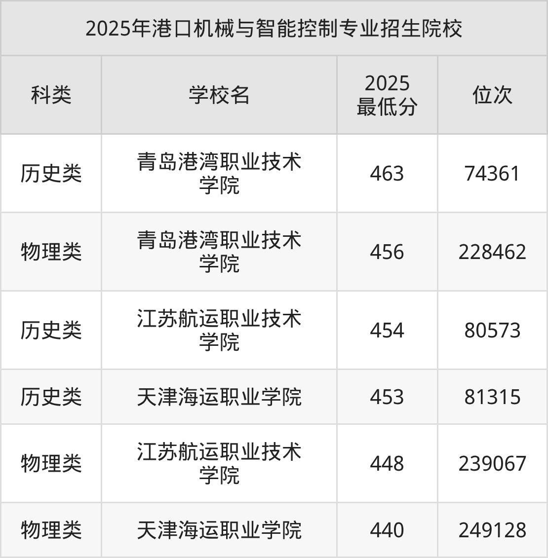 因为各校在不同省市区的收分不一样,为方便对比,这里以河北省高考为例,列举上述院校2025年在河北港口机械与智能控制招生分数情况。