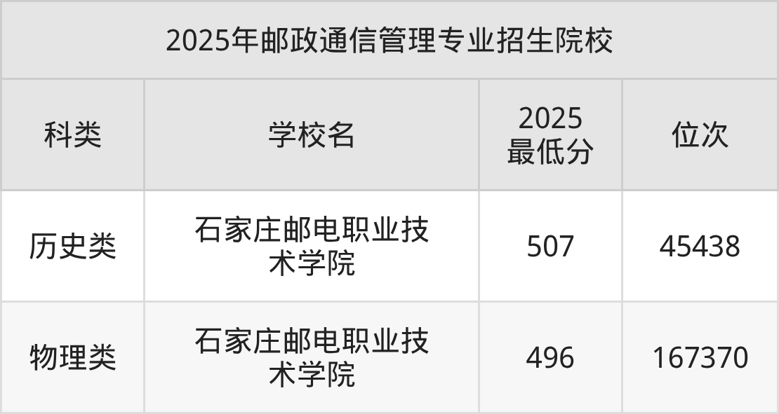 因为各校在不同省市区的收分不一样,为方便对比,这里以河北省高考为例,列举上述院校2025年在河北邮政通信管理招生分数情况。