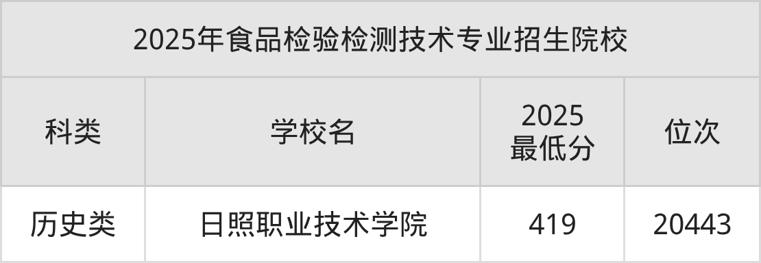因为各校在不同省市区的收分不一样,为方便对比,这里以内蒙古自治区高考为例,列举上述院校2025年在内蒙古食品检验检测技术招生分数情况。