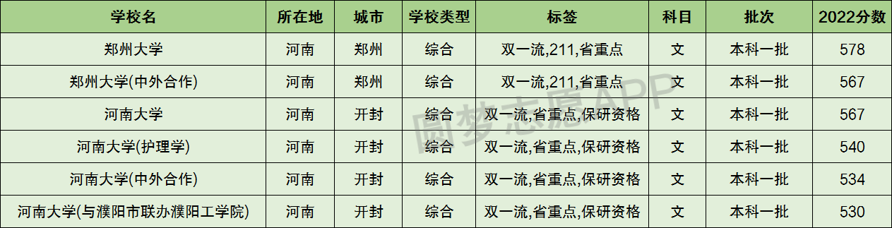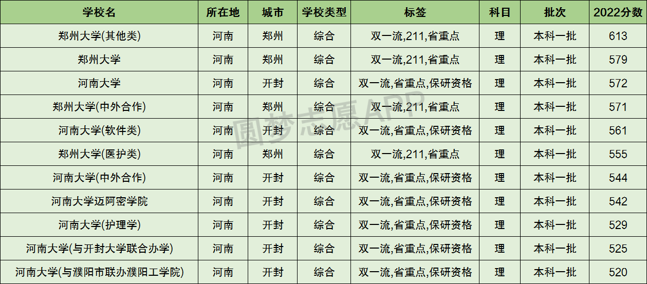此外下表中还整理了河南省双一流大学的分数及名单。