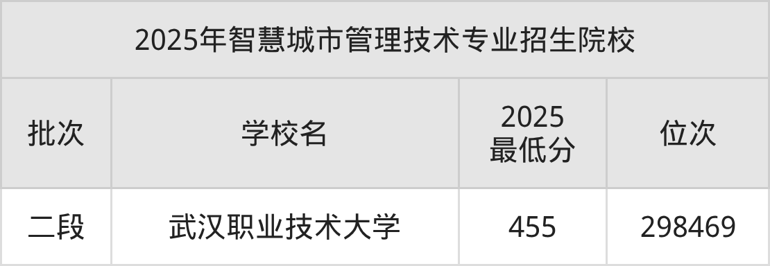 数据显示,智慧城市管理技术最好大学的收分在455分及以上。