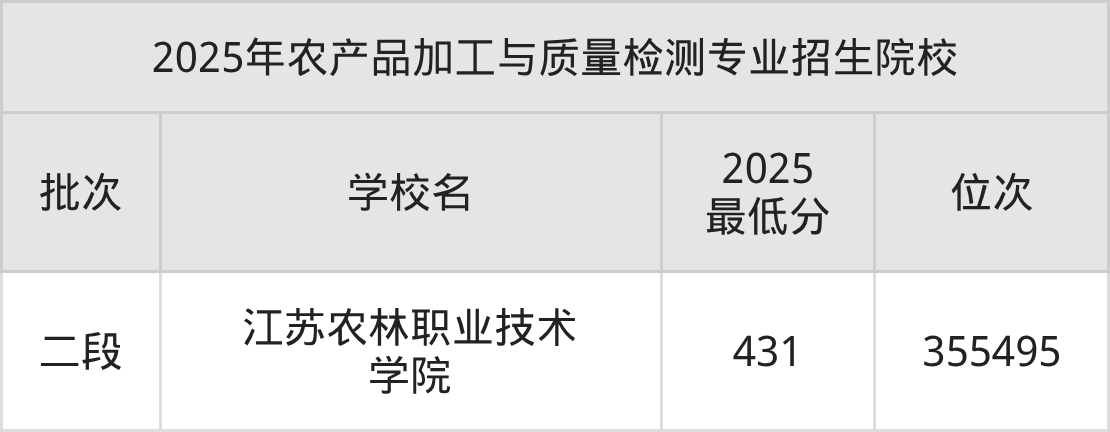 2、农产品加工与质量检测院校2025分数线