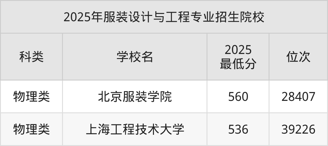 数据显示,服装设计与工程最好大学的收分在536分及以上,其中北京服装学院最低分达到了560分,对应最低位次为28407名。