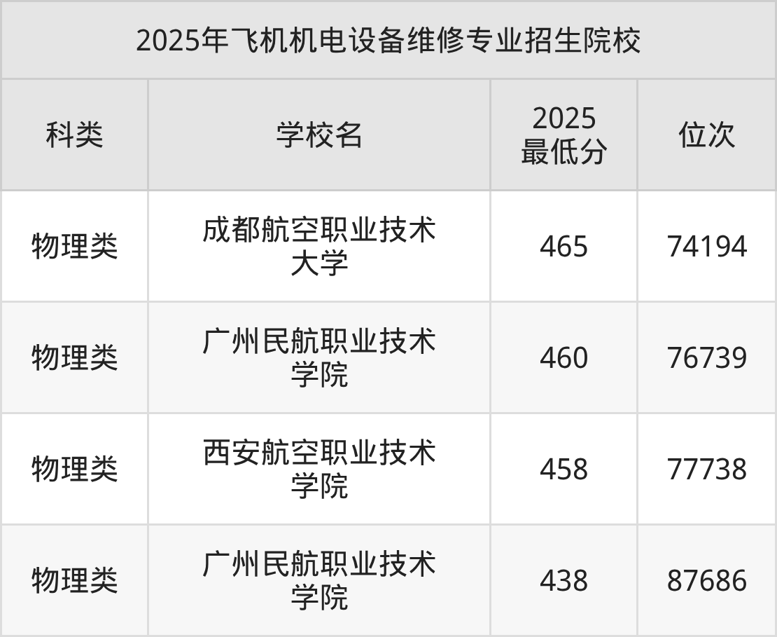 因为各校在不同省市区的收分不一样,为方便对比,这里以辽宁省高考为例,列举上述院校2025年在辽宁飞机机电设备维修招生分数情况。