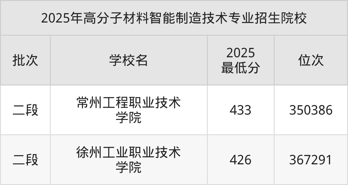 2、高分子材料智能制造技术院校2025分数线