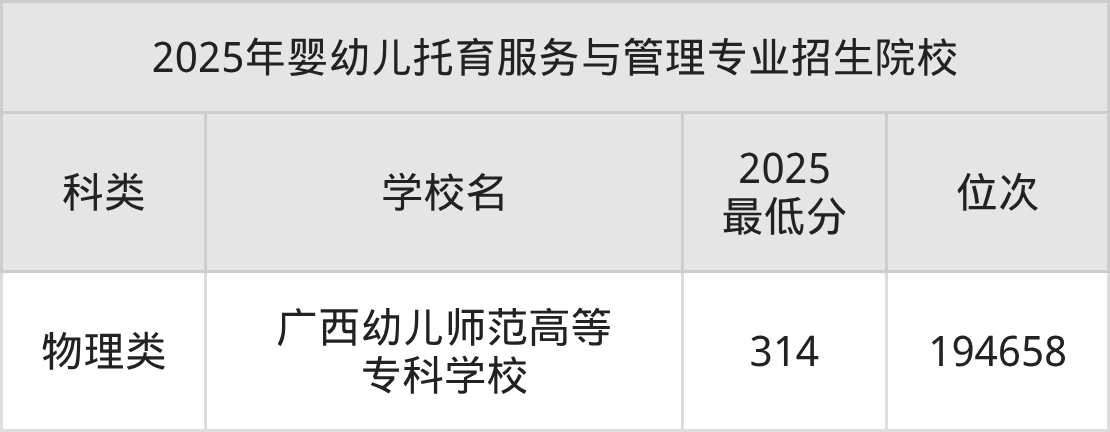数据显示,婴幼儿托育服务与管理最好大学的收分在314分及以上。