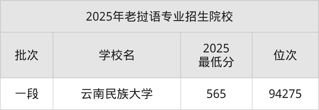 因为各校在不同省市区的收分不一样,为方便对比,这里以浙江省高考为例,列举上述院校2025年在浙江老挝语招生分数情况。