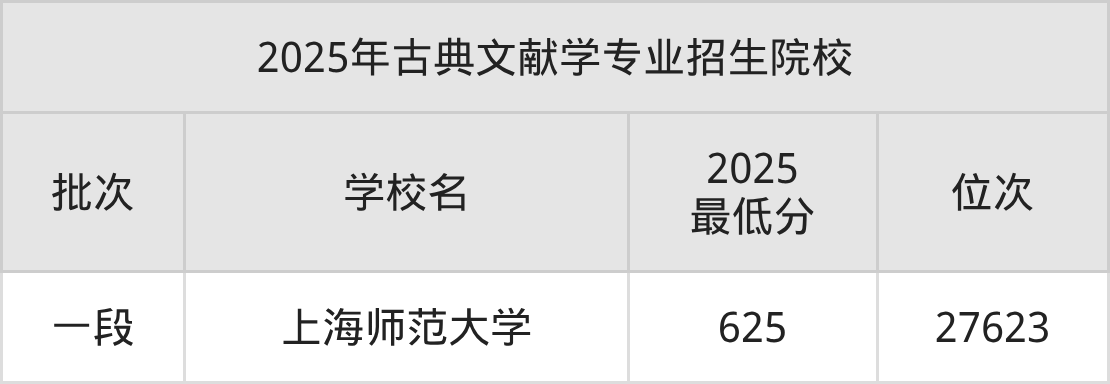 数据显示,古典文献学最好大学的收分在625分及以上。