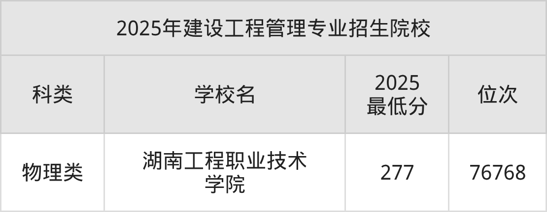 因为各校在不同省市区的收分不一样,为方便对比,这里以吉林省高考为例,列举上述院校2025年在吉林建设工程管理招生分数情况。