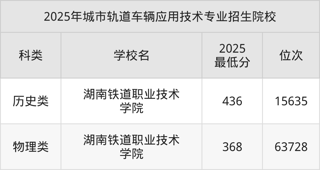 2、城市轨道车辆应用技术院校2025分数线